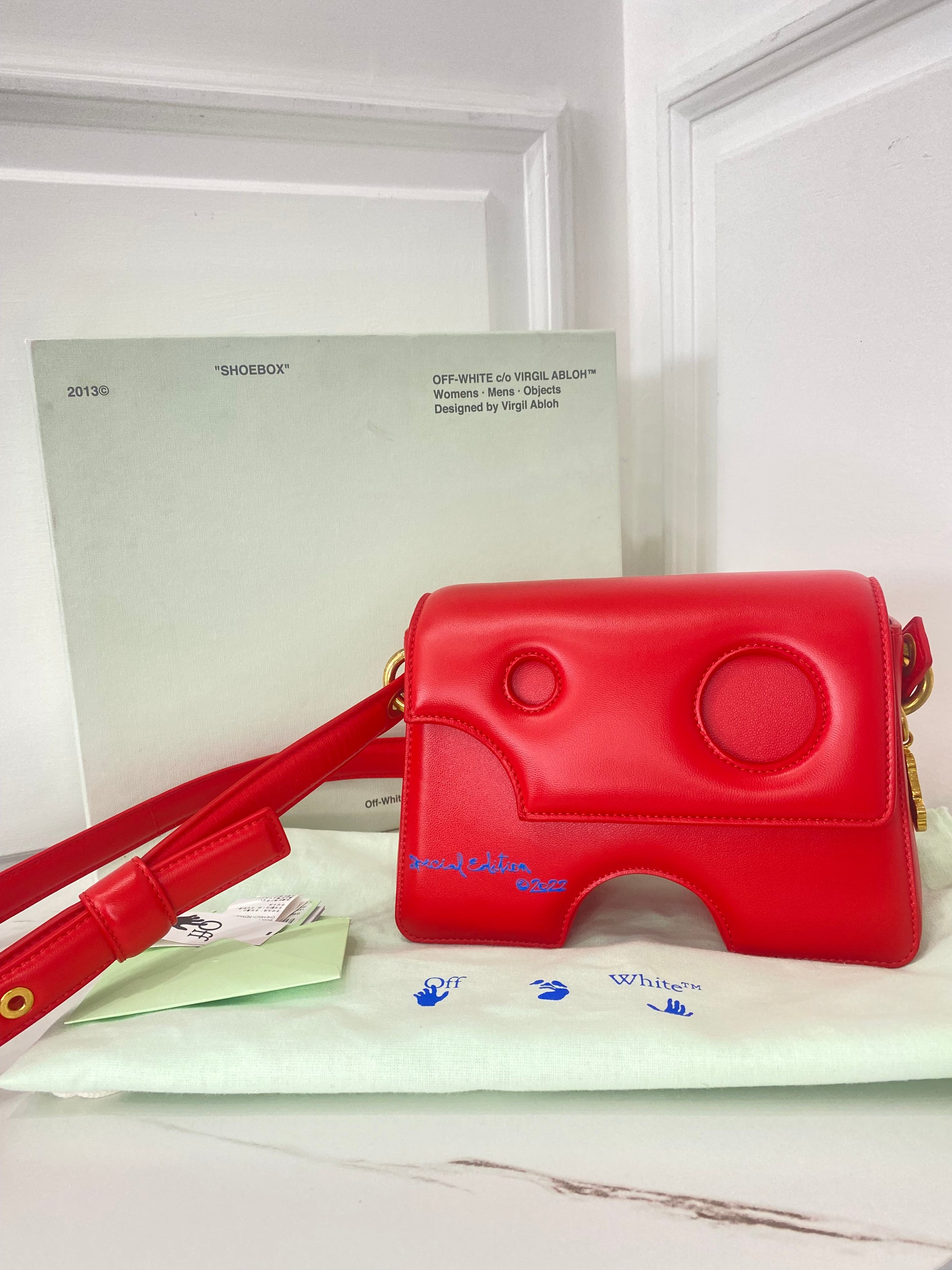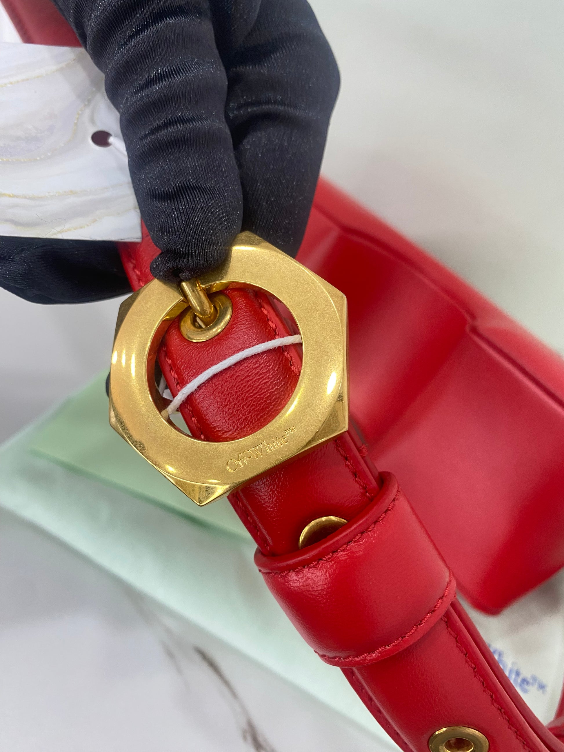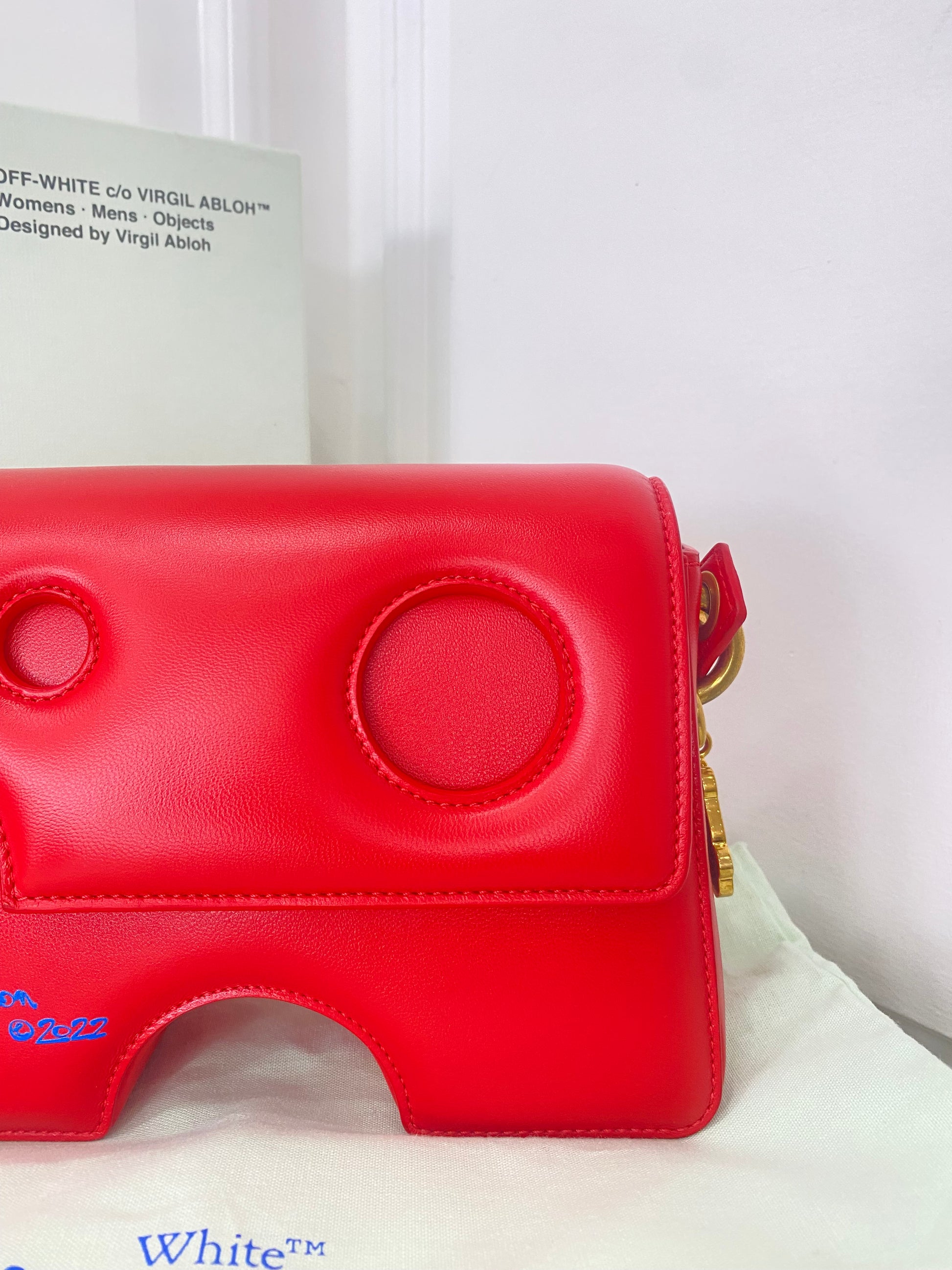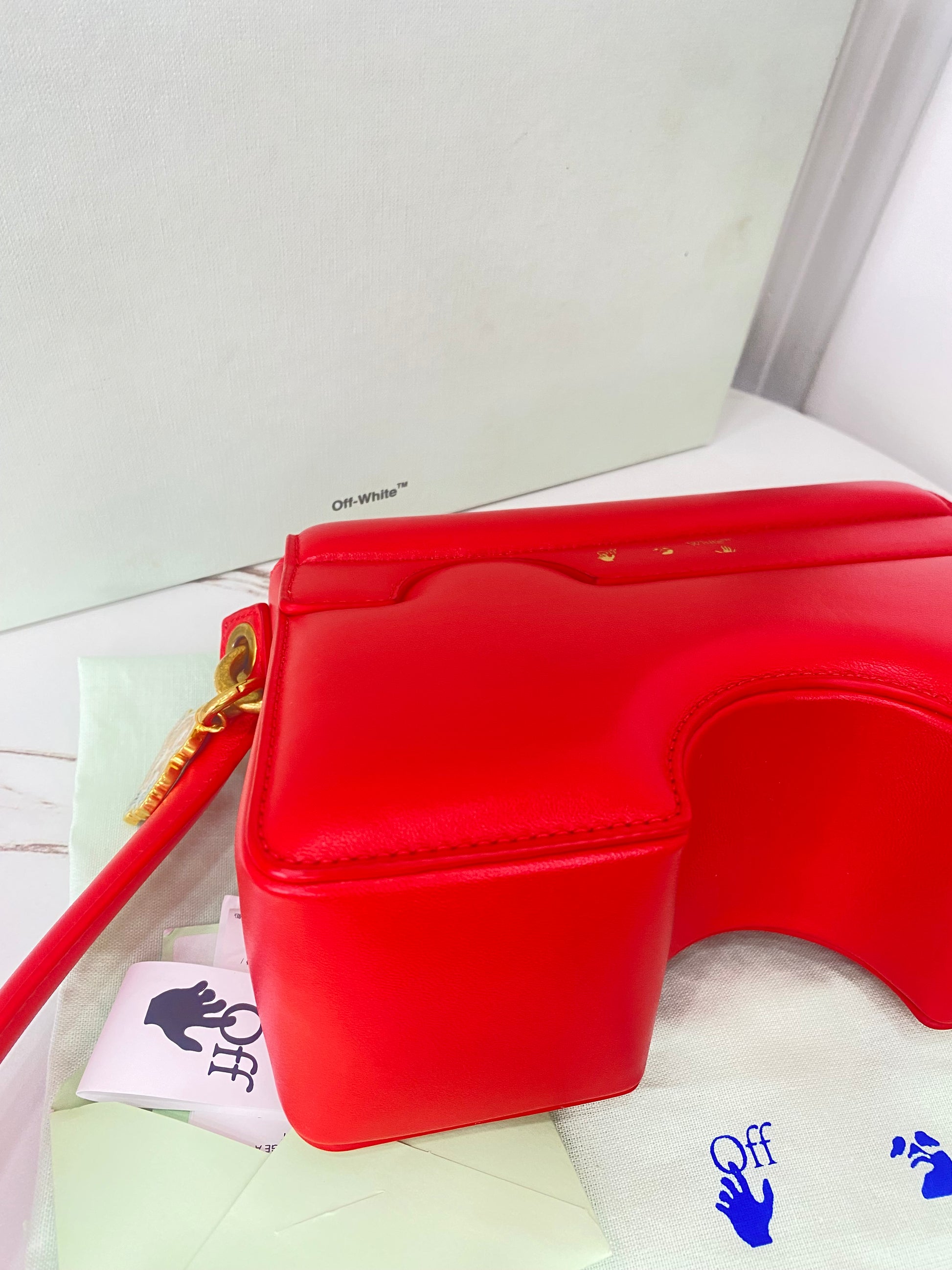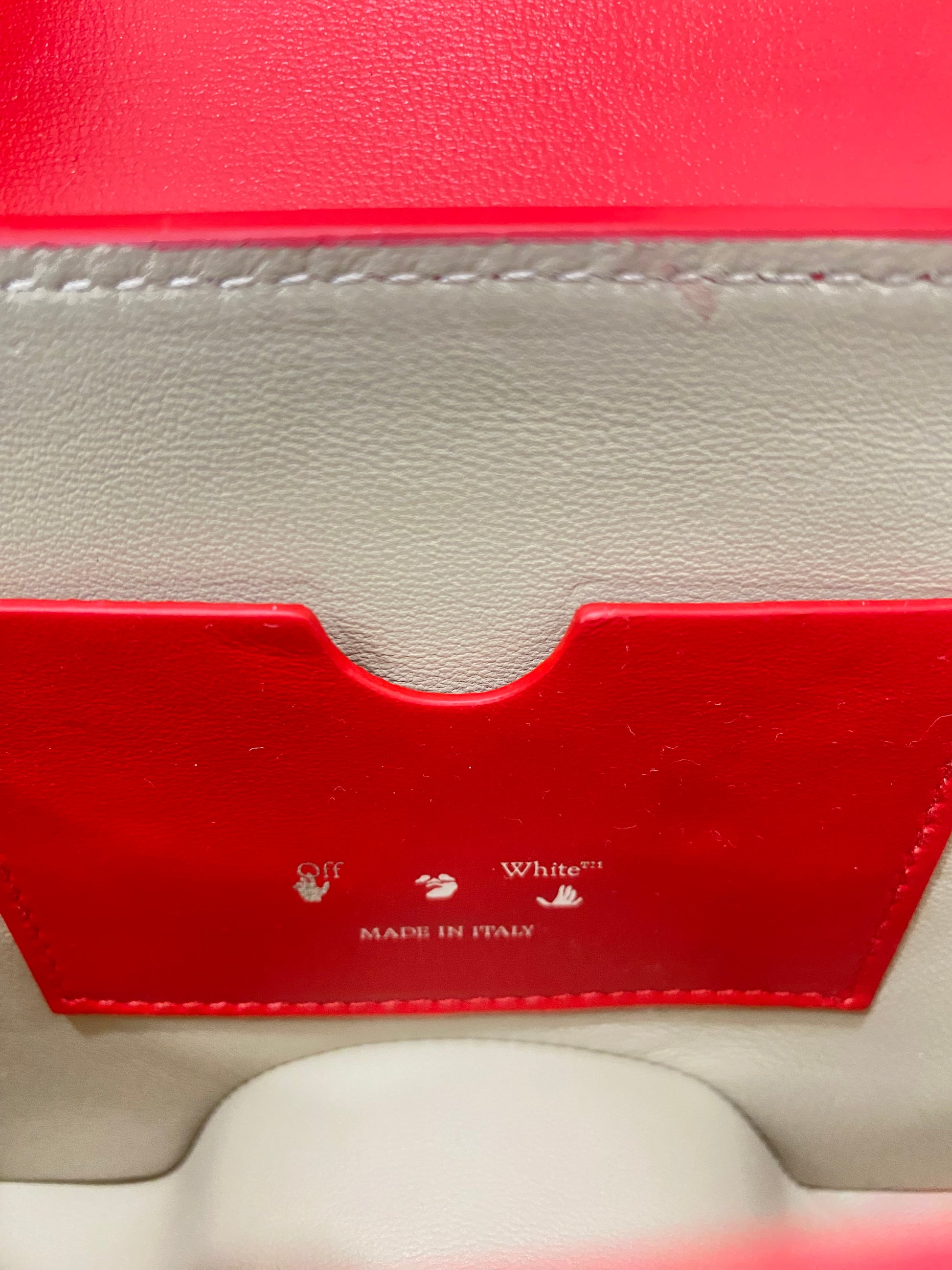 Borsa Off-White Burrow, in Pelle Rossa, con Tracolla regolabile. Dotata di una patta frontale con chiusura magnetica. Parti metalliche dorate. •Condizioni: USATA, ma in perfette condizioni. •Completa di tracolla regolabile, dust bag, cartellini e scatola.