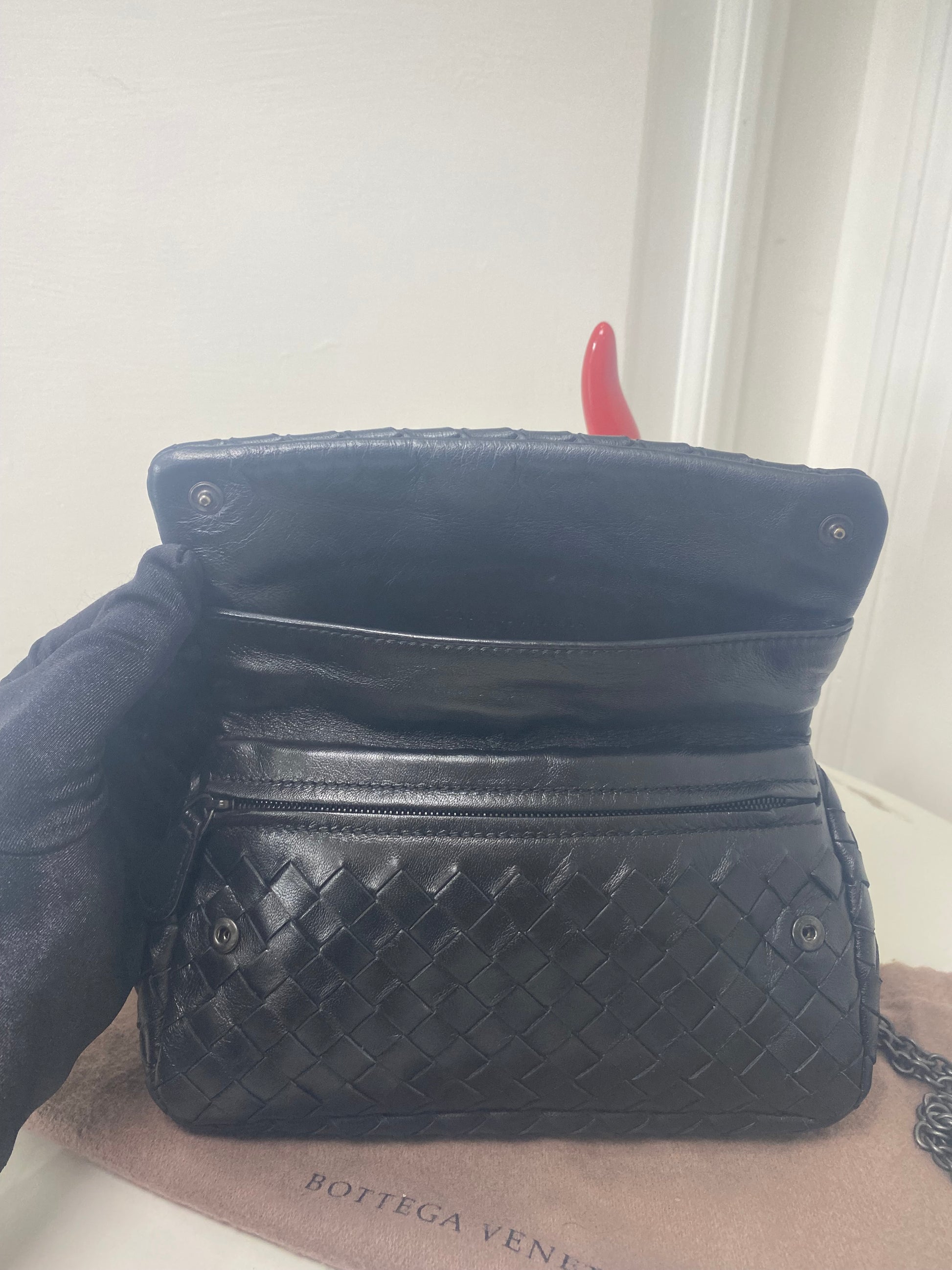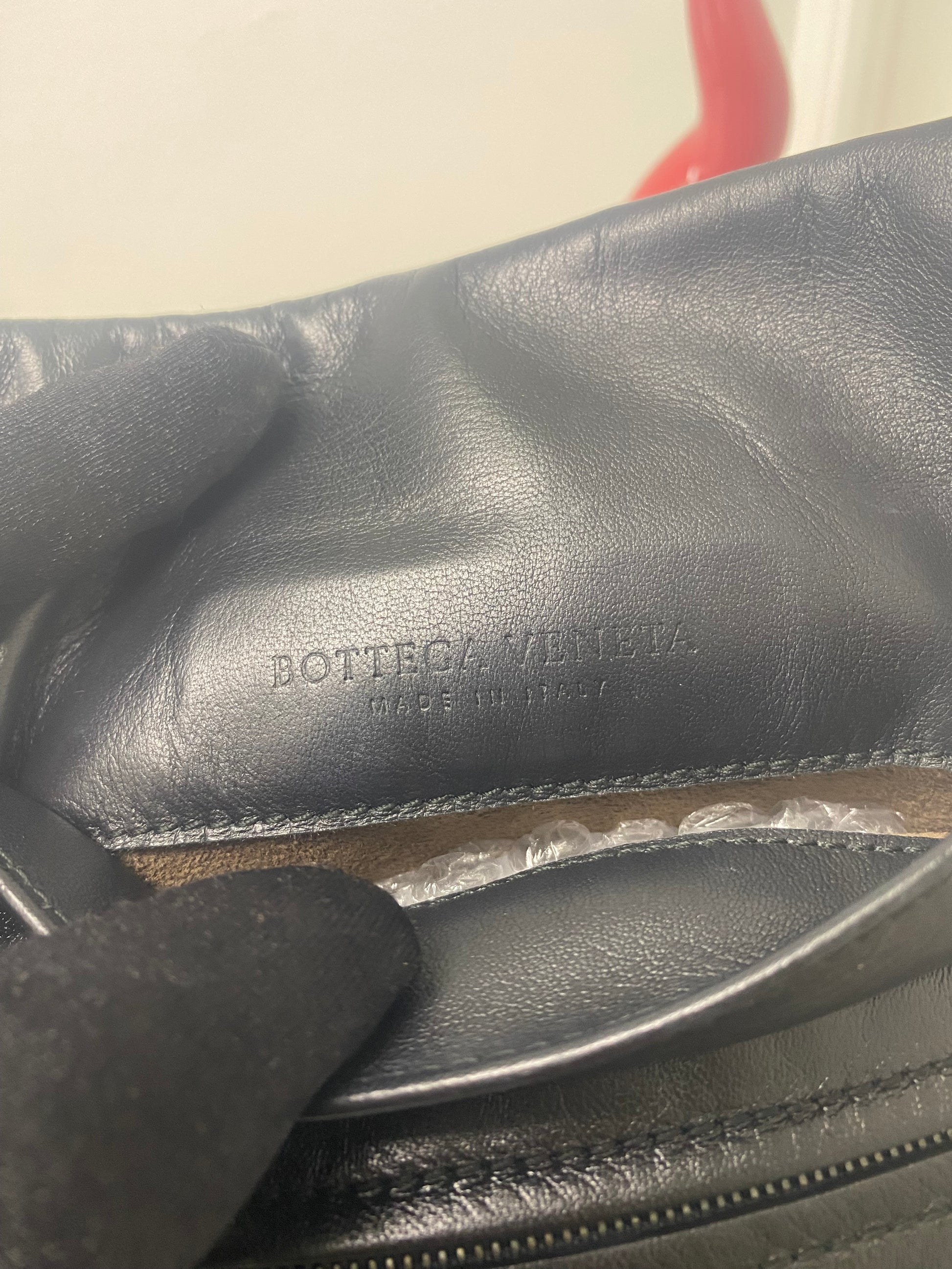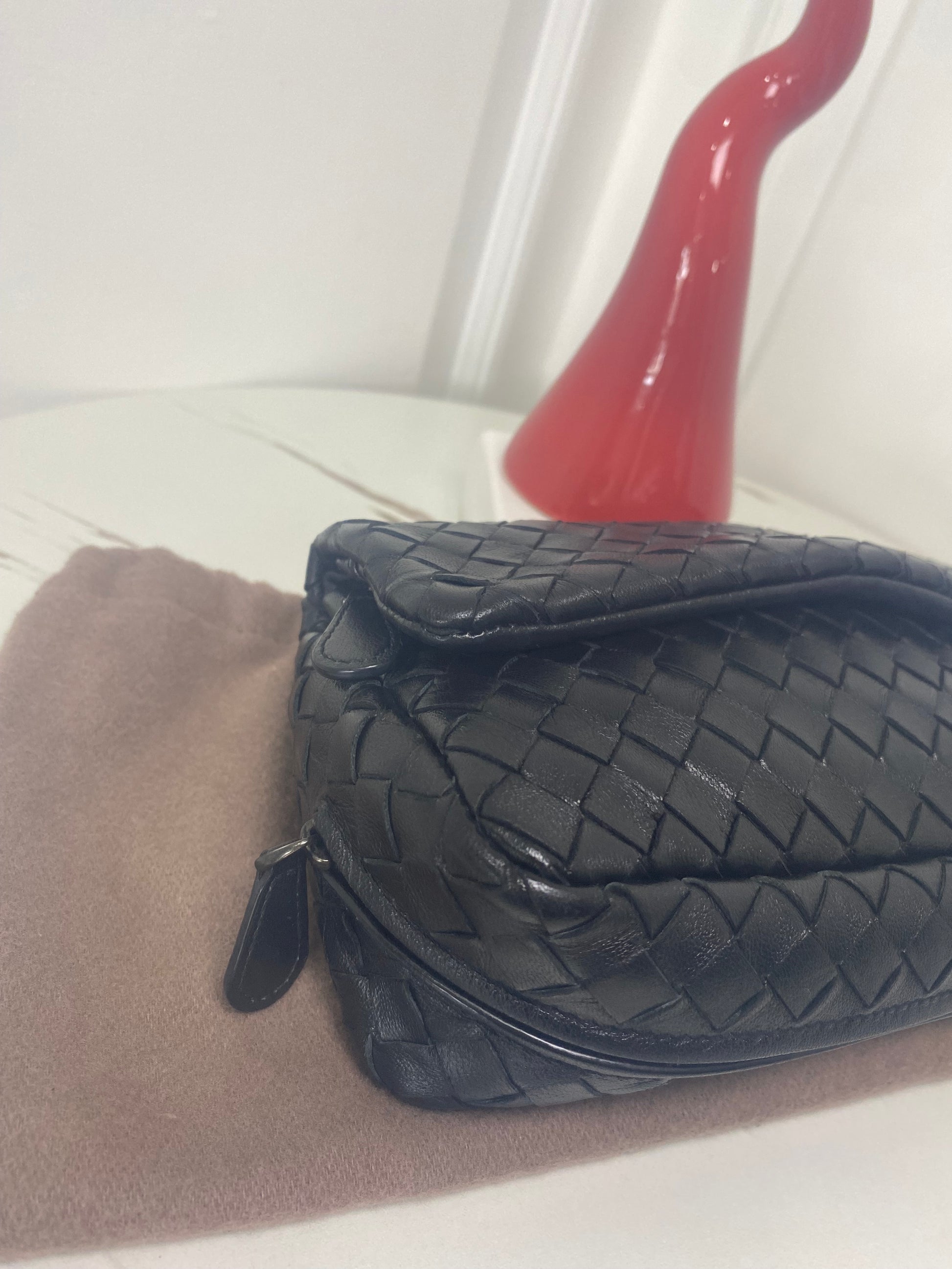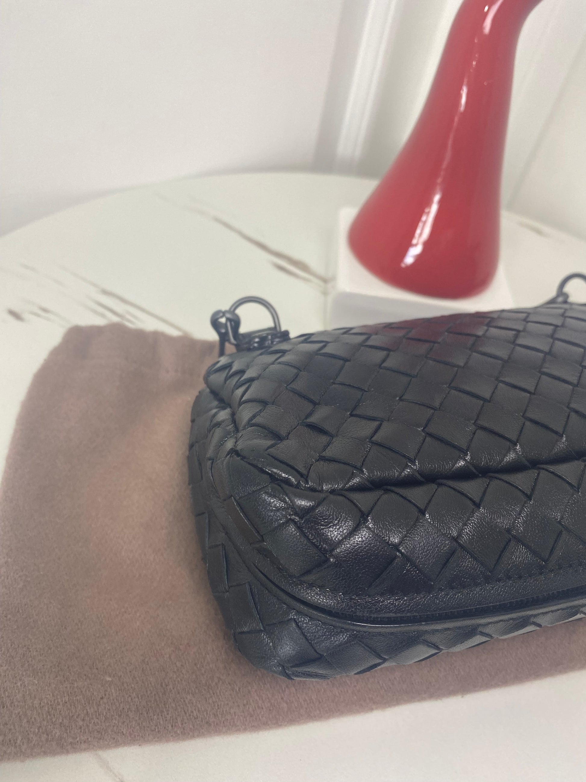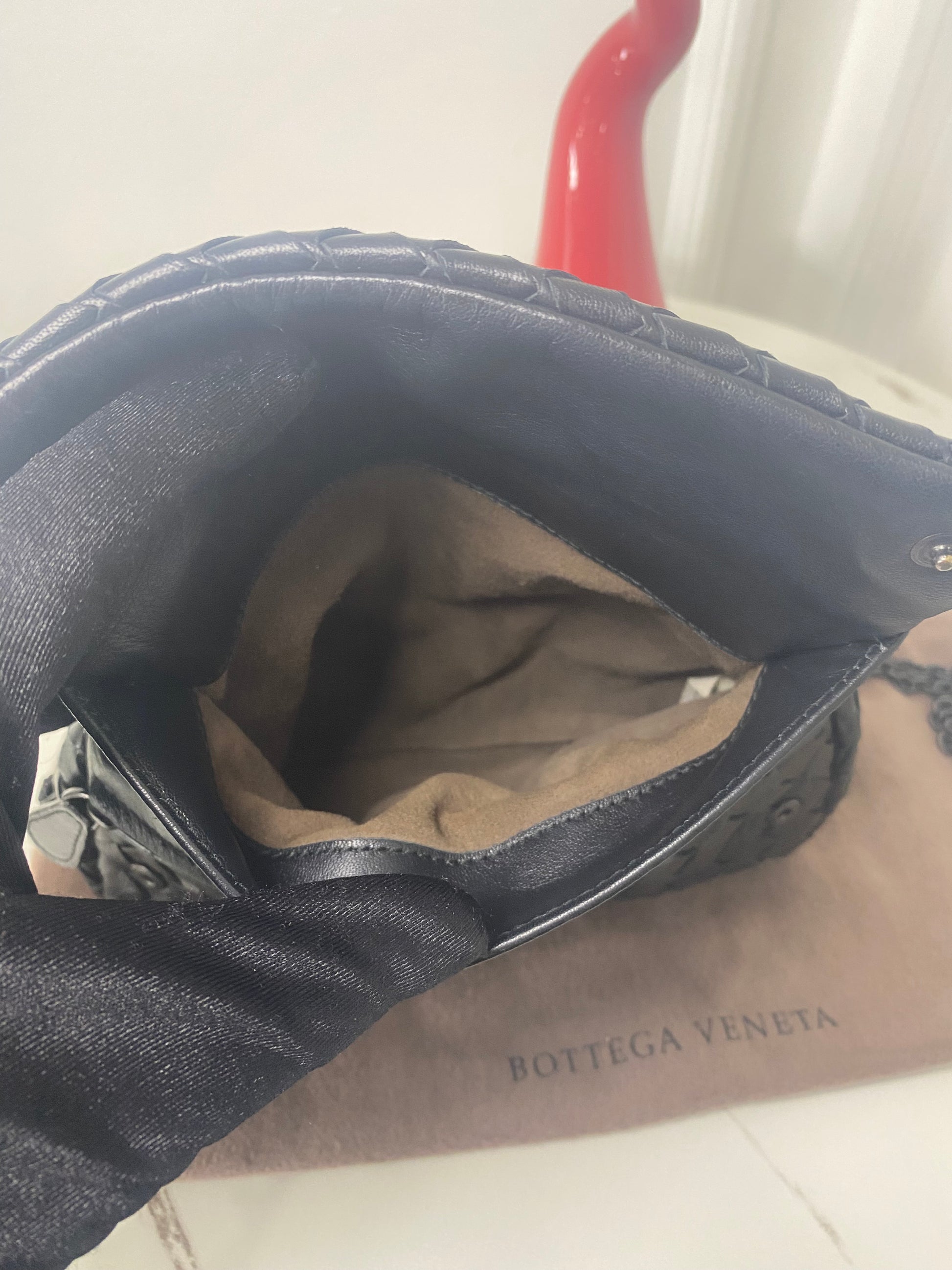 Borsa Bottega Veneta Olimpia in pelle nera intrecciata, dotata di 2 tasche con cerniera e una con chiusura a bottino.