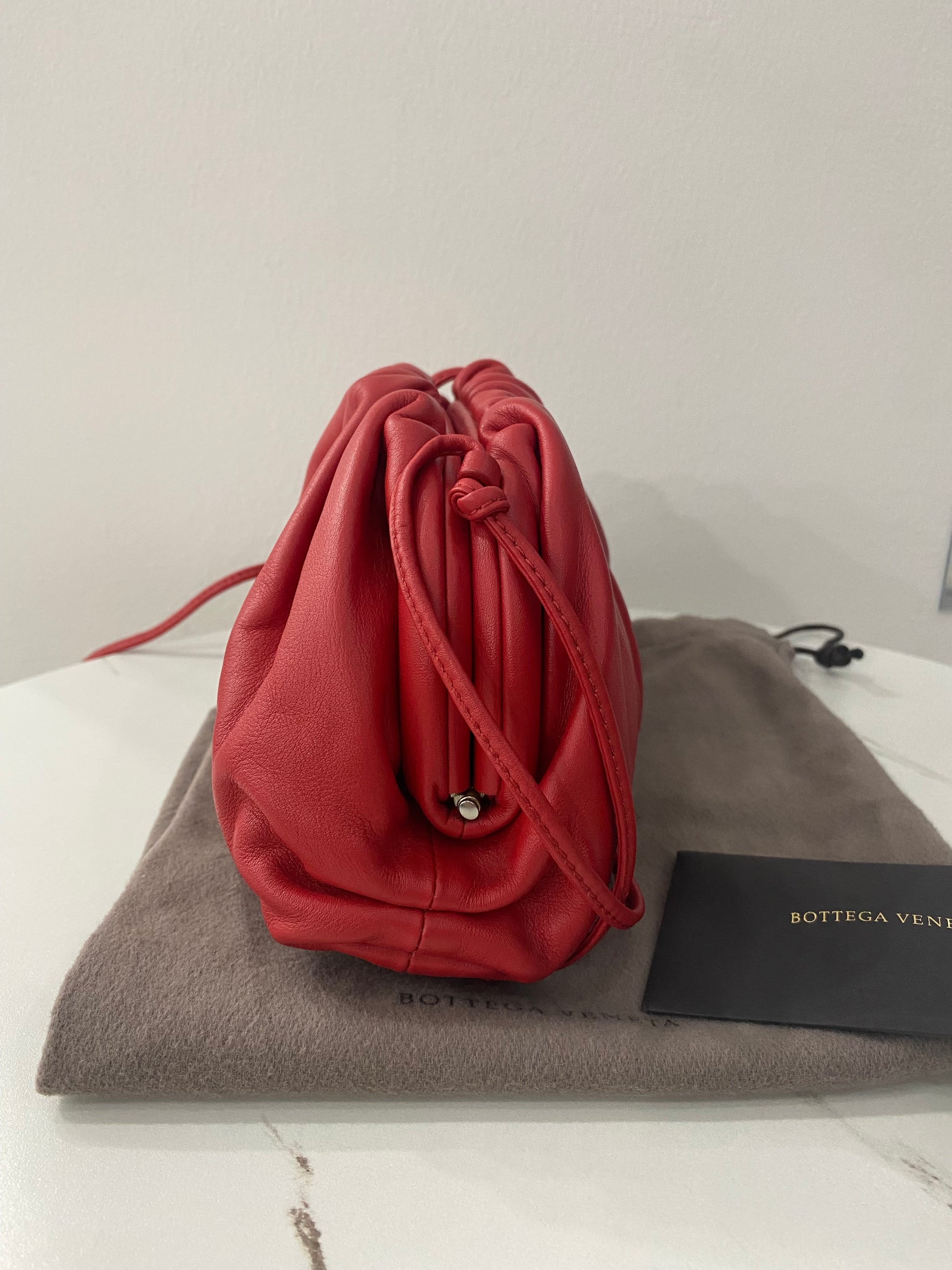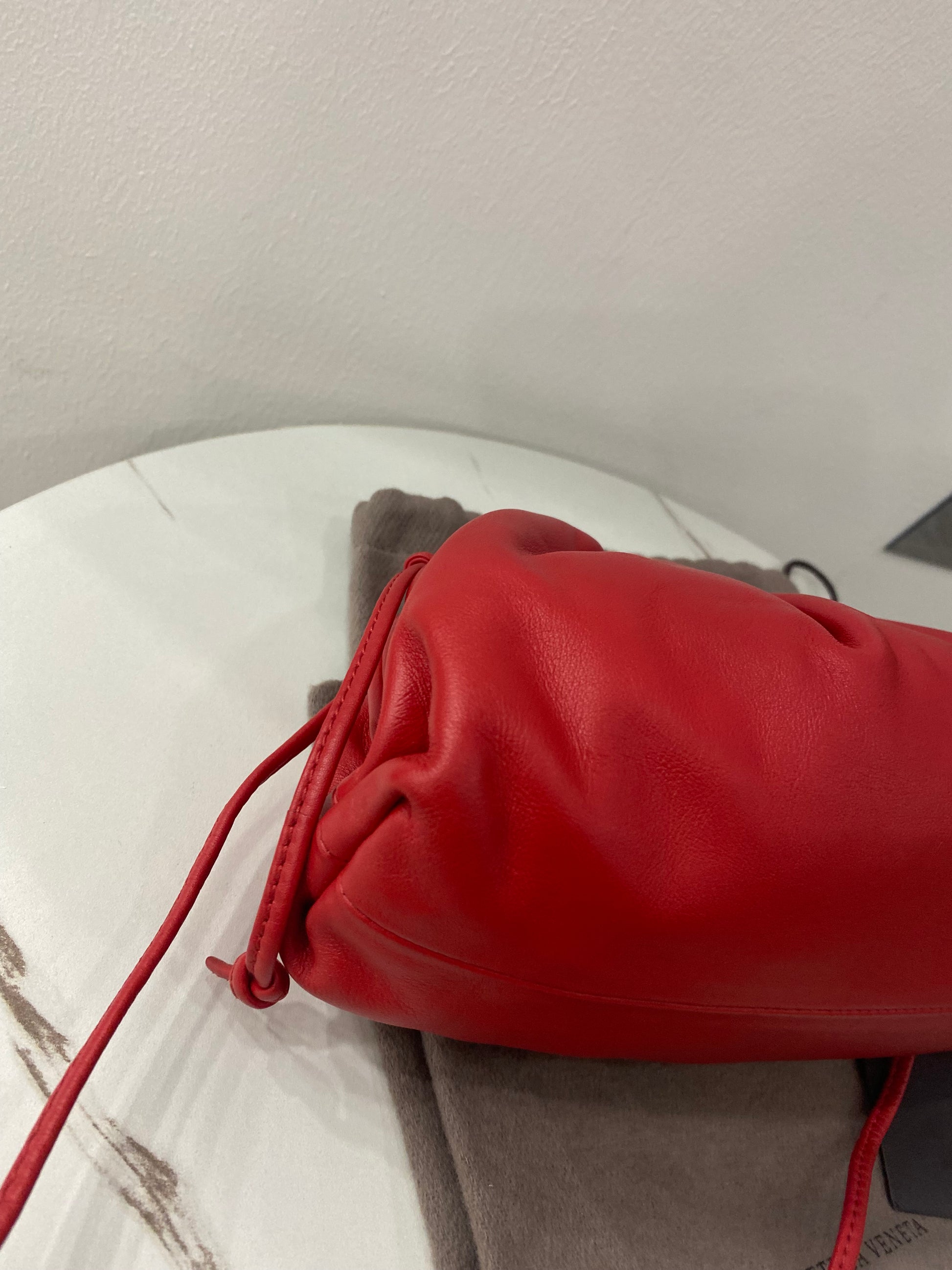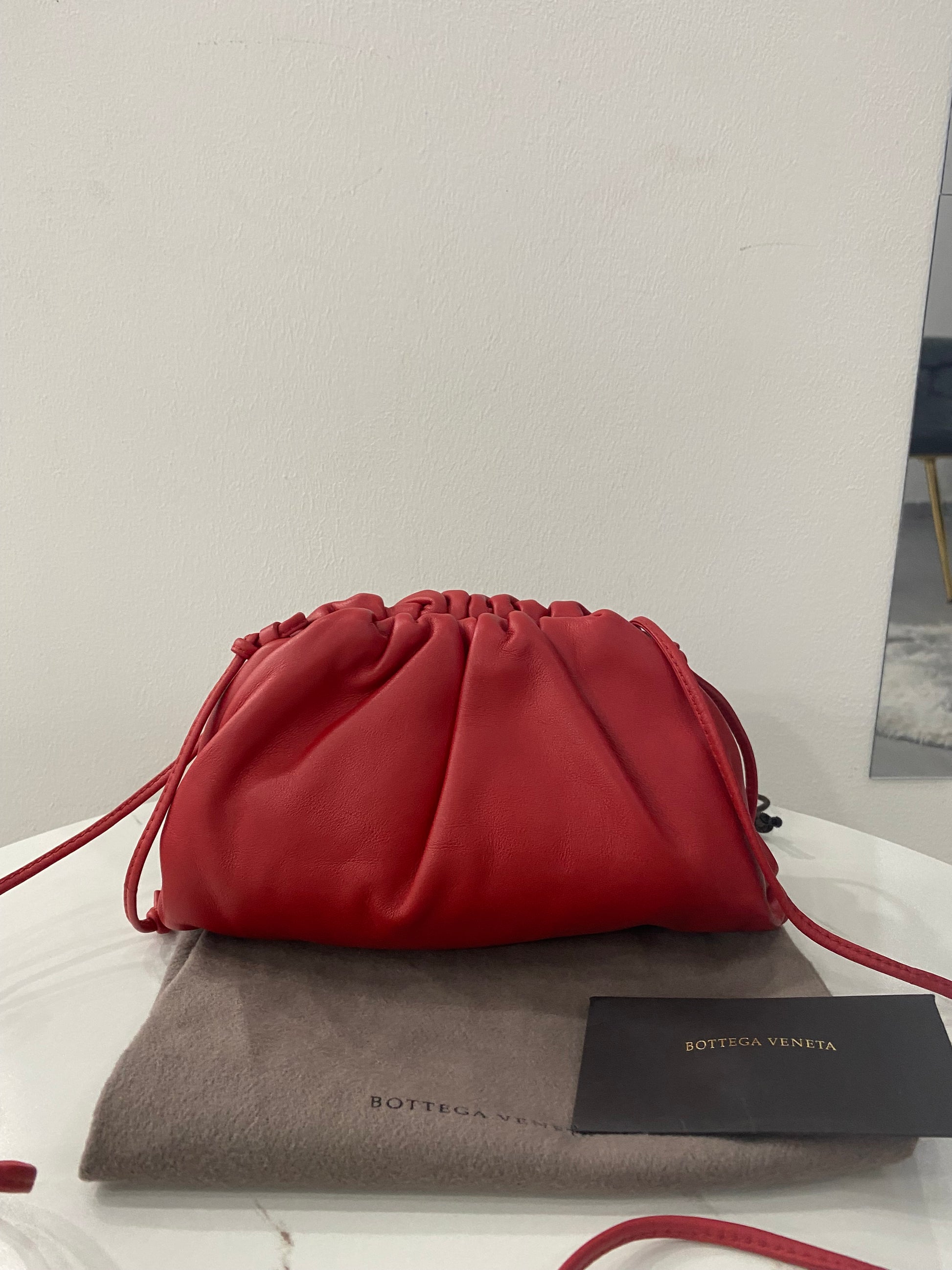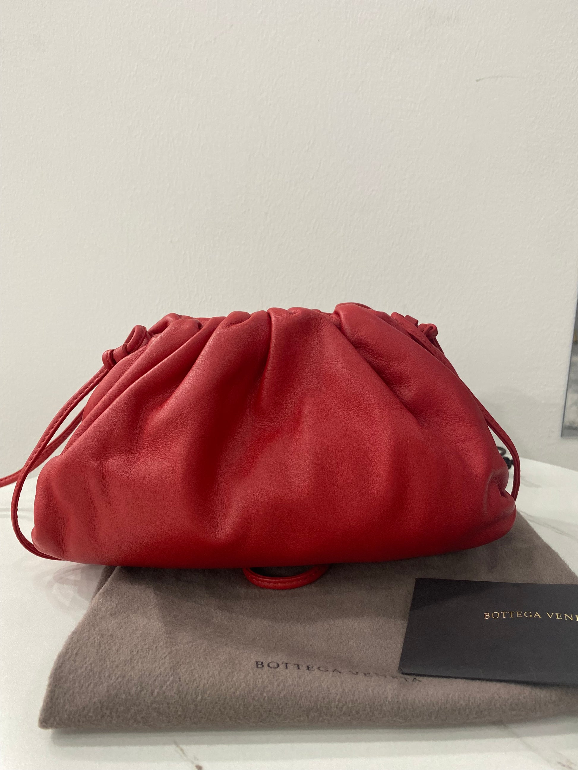 Borsa Bottega Veneta mini Pouch in pelle liscia rossa con tracolla.