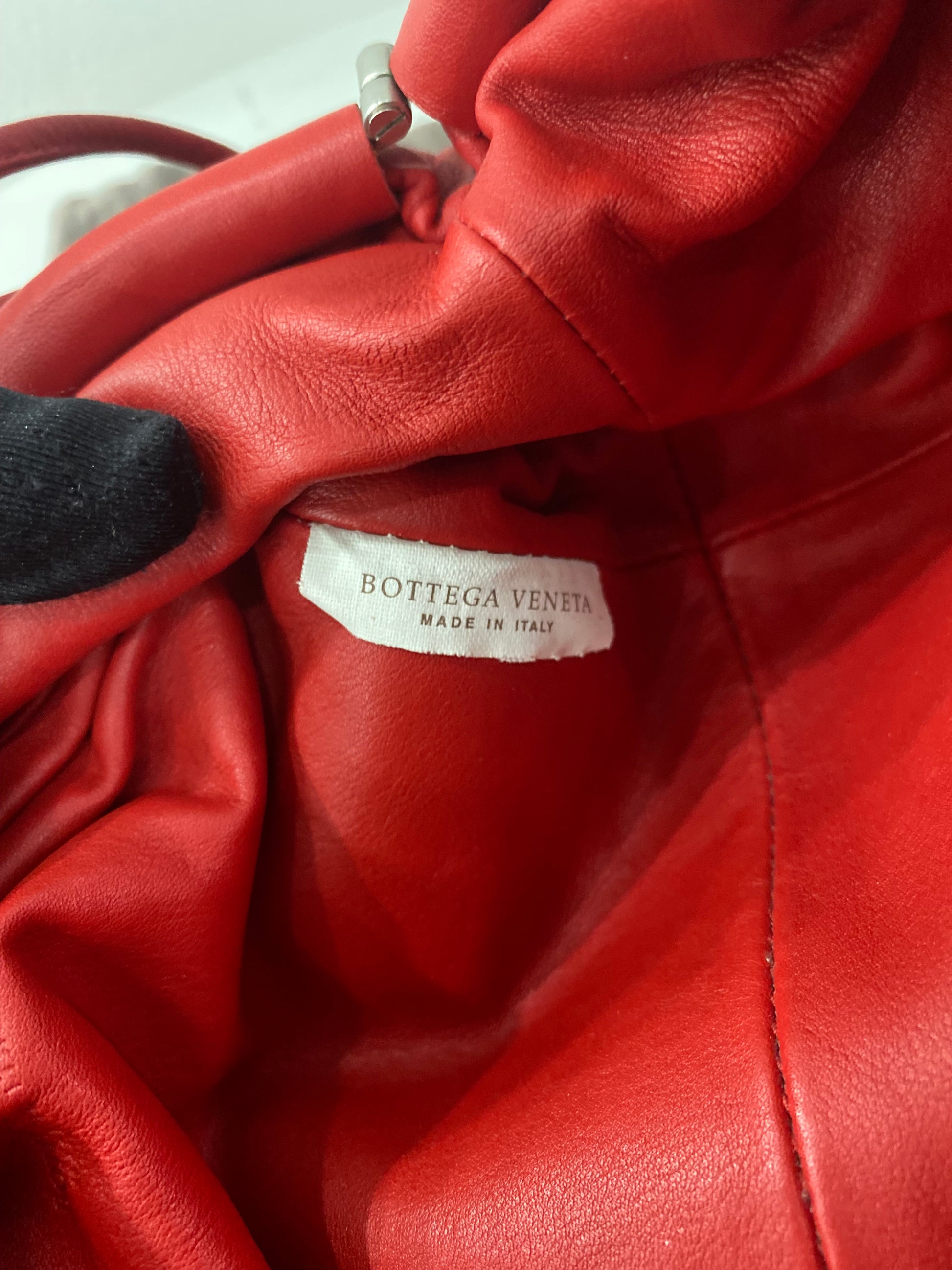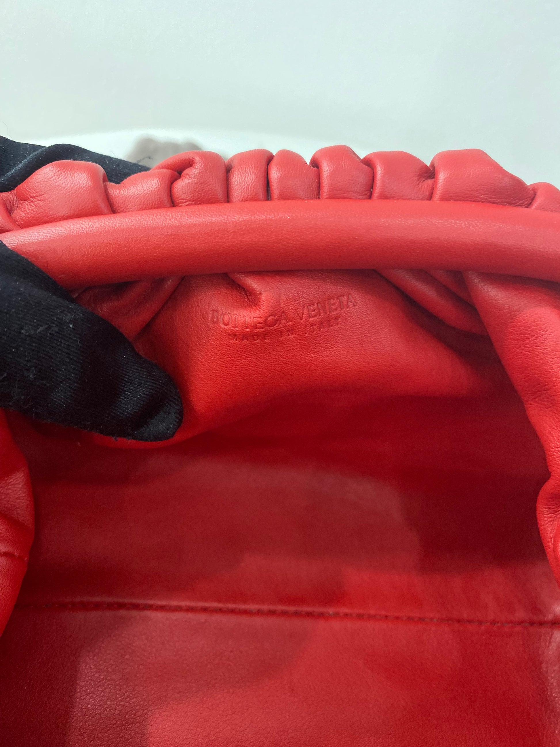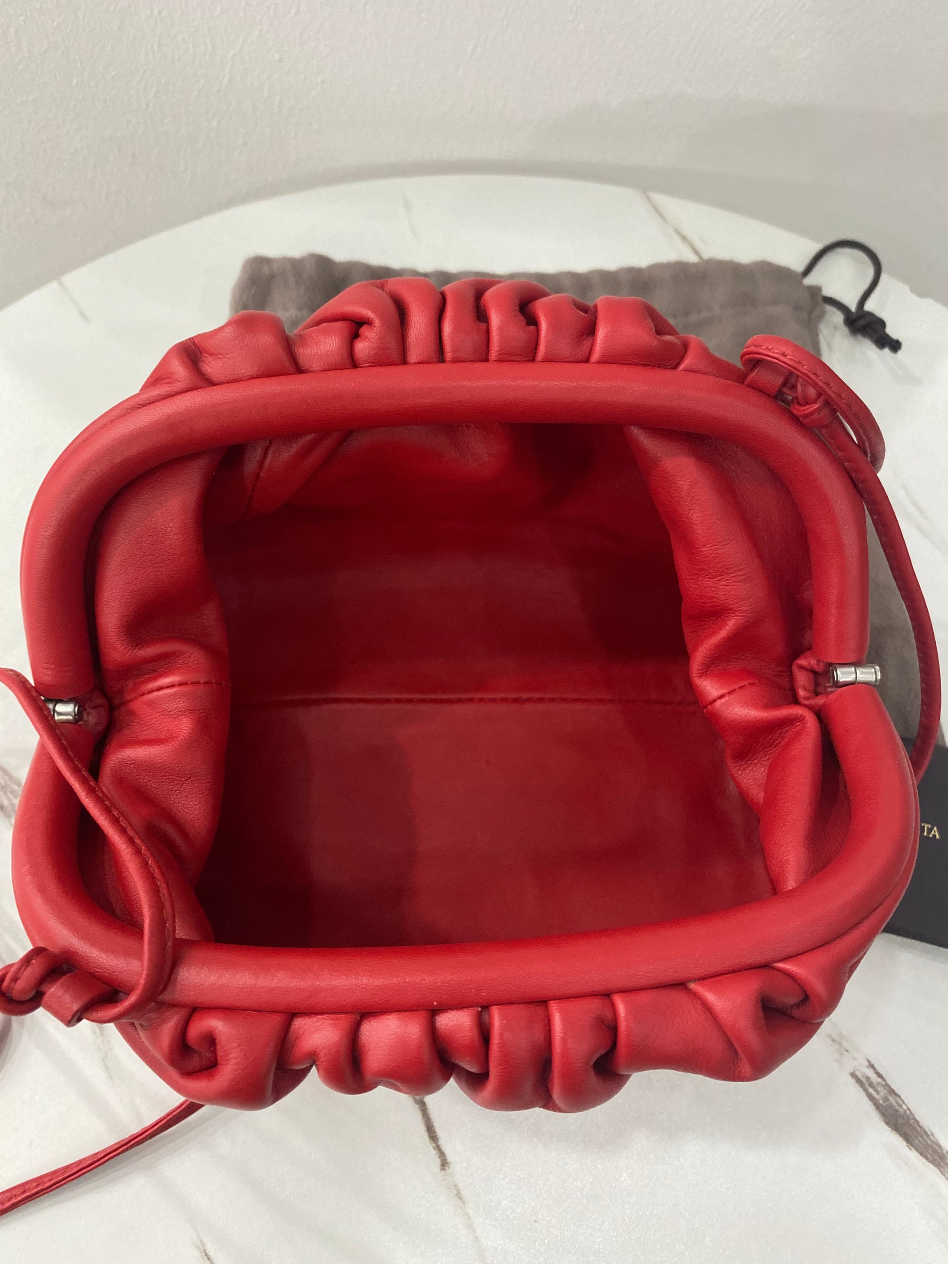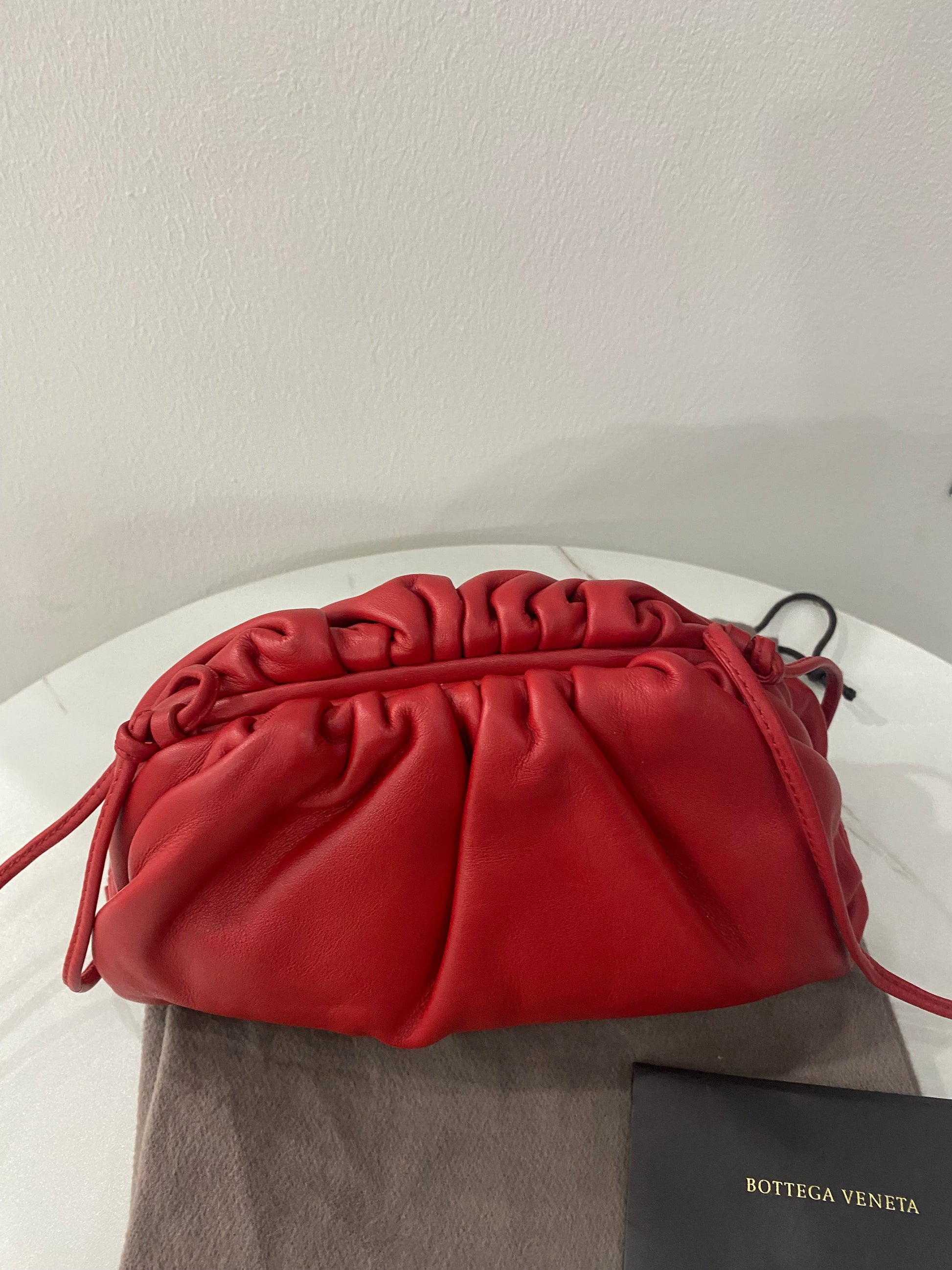 Borsa Bottega Veneta mini Pouch in pelle liscia rossa con tracolla.
