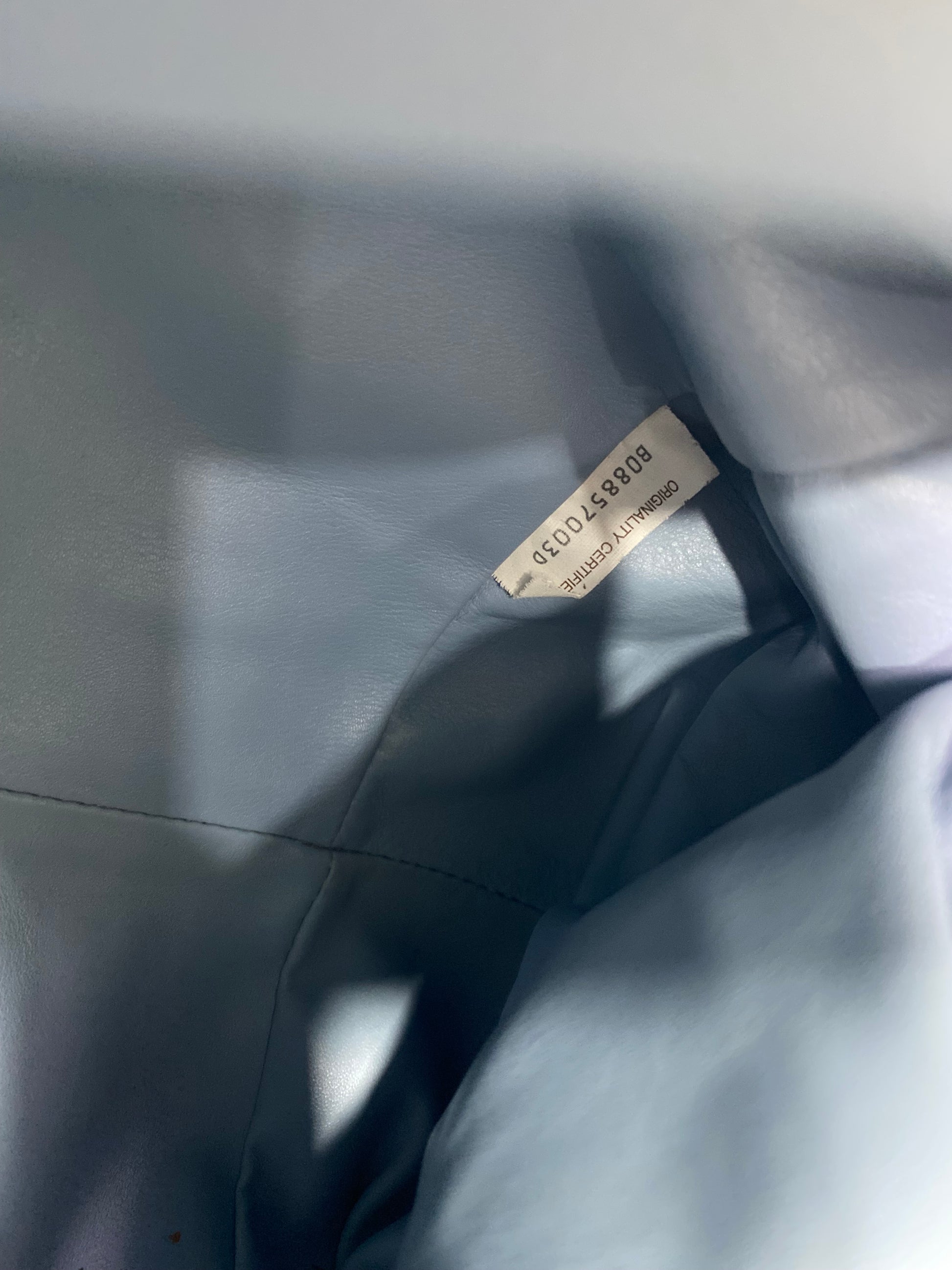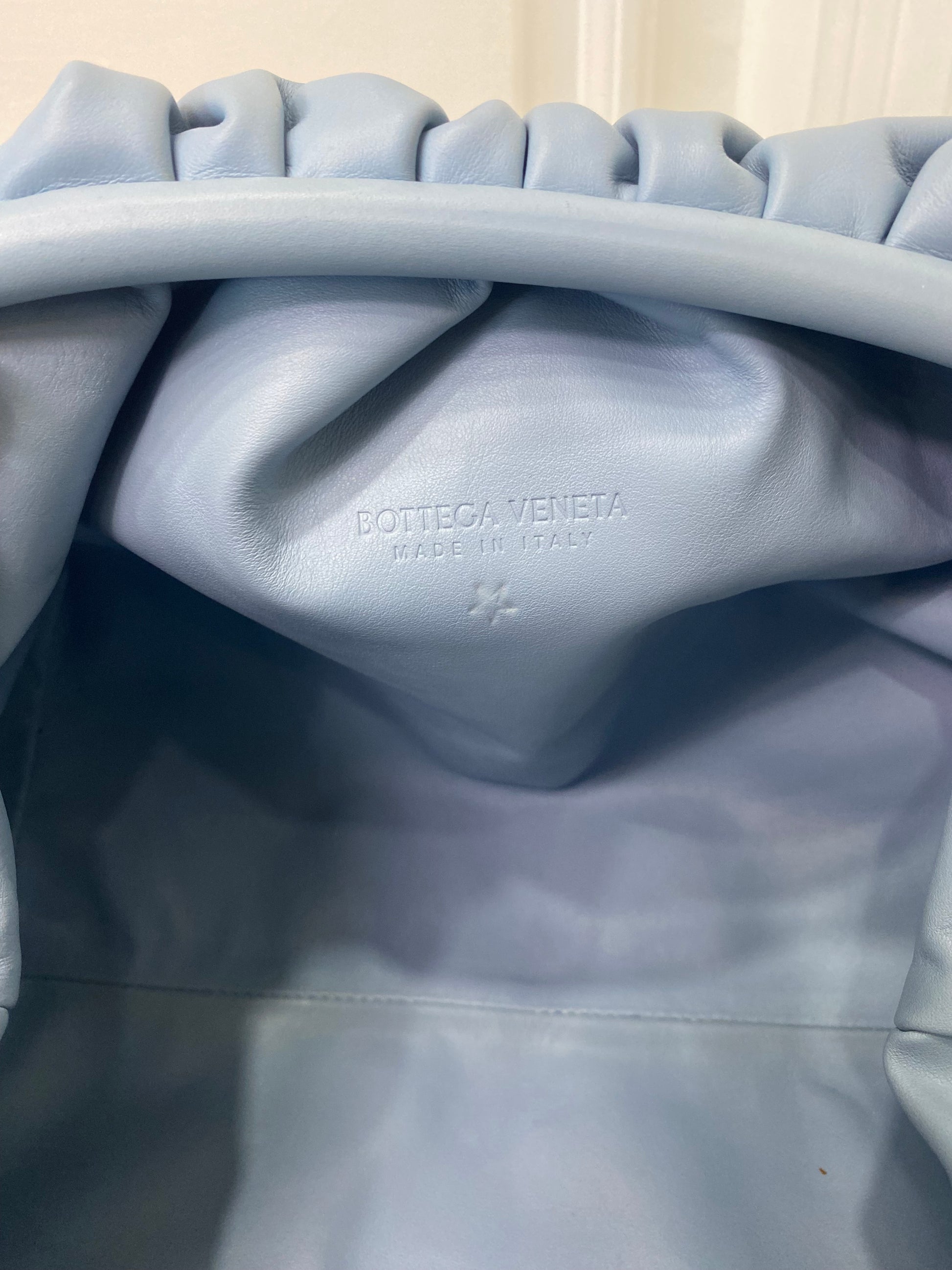 Pochette a mano Bottega Veneta Pouch in pelle liscia color azzurro. Con chiusura a scatto magnetica e hardware oro.