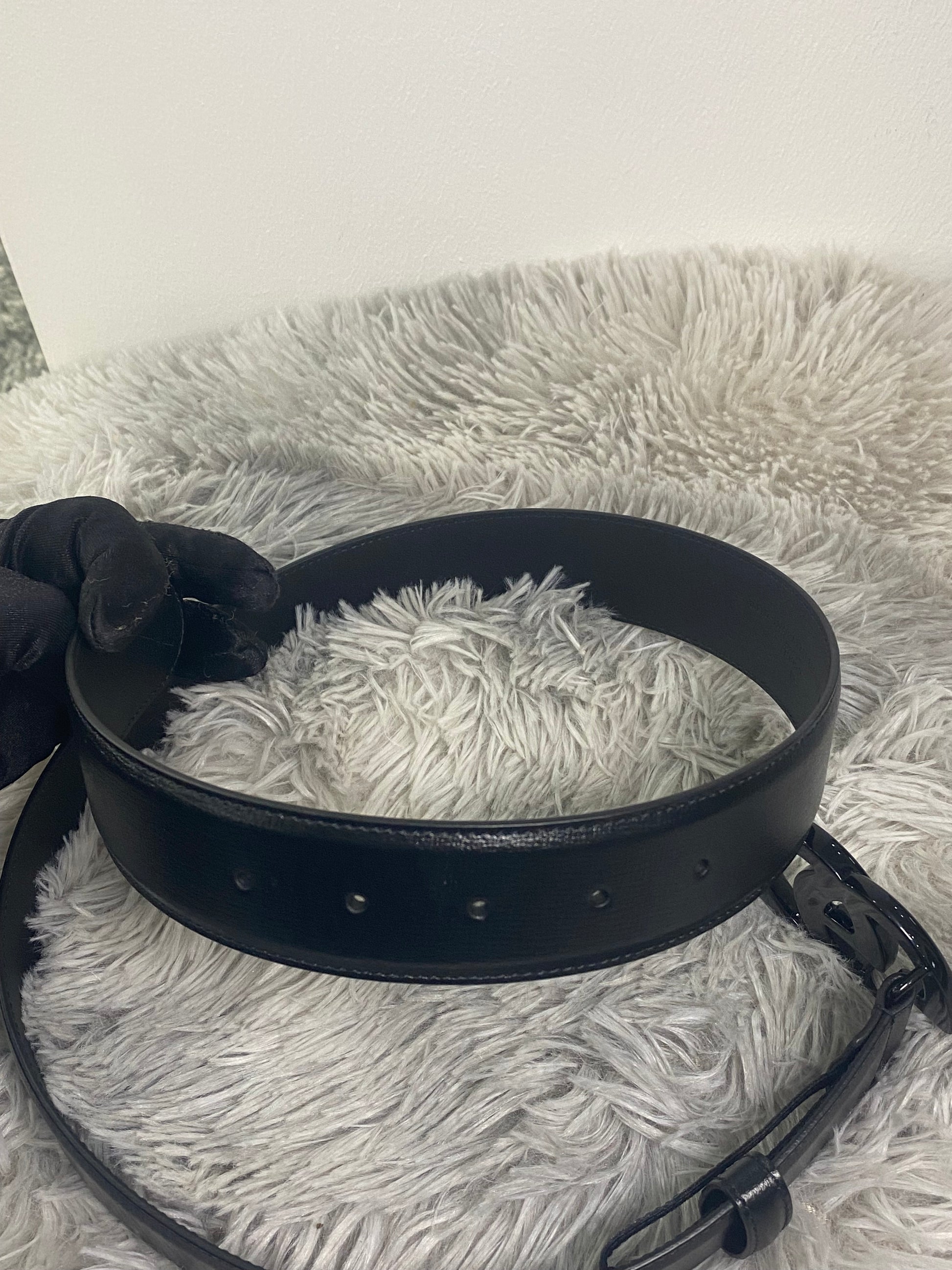 Cintura Gucci GG in pelle nera e hardware nero.