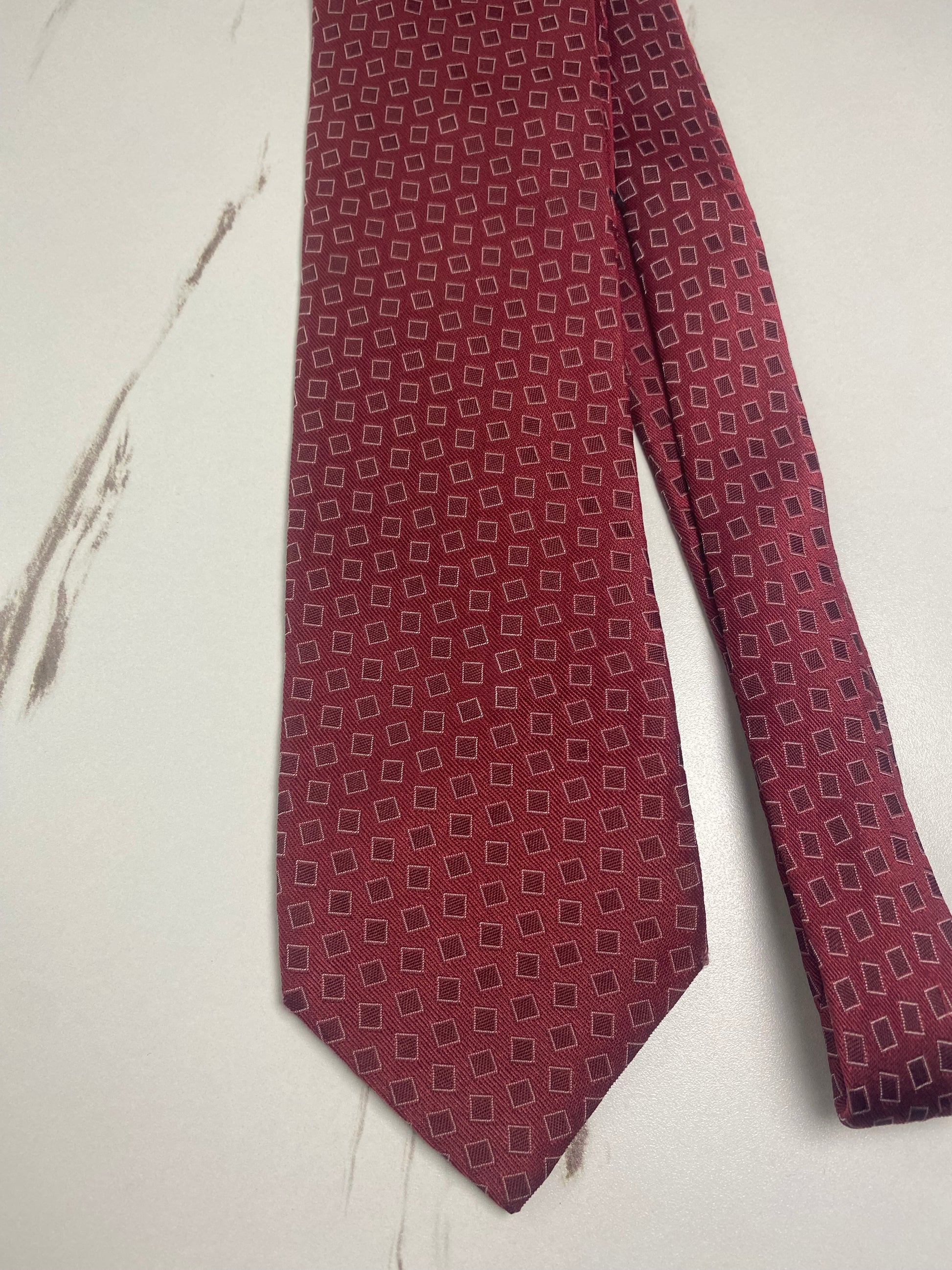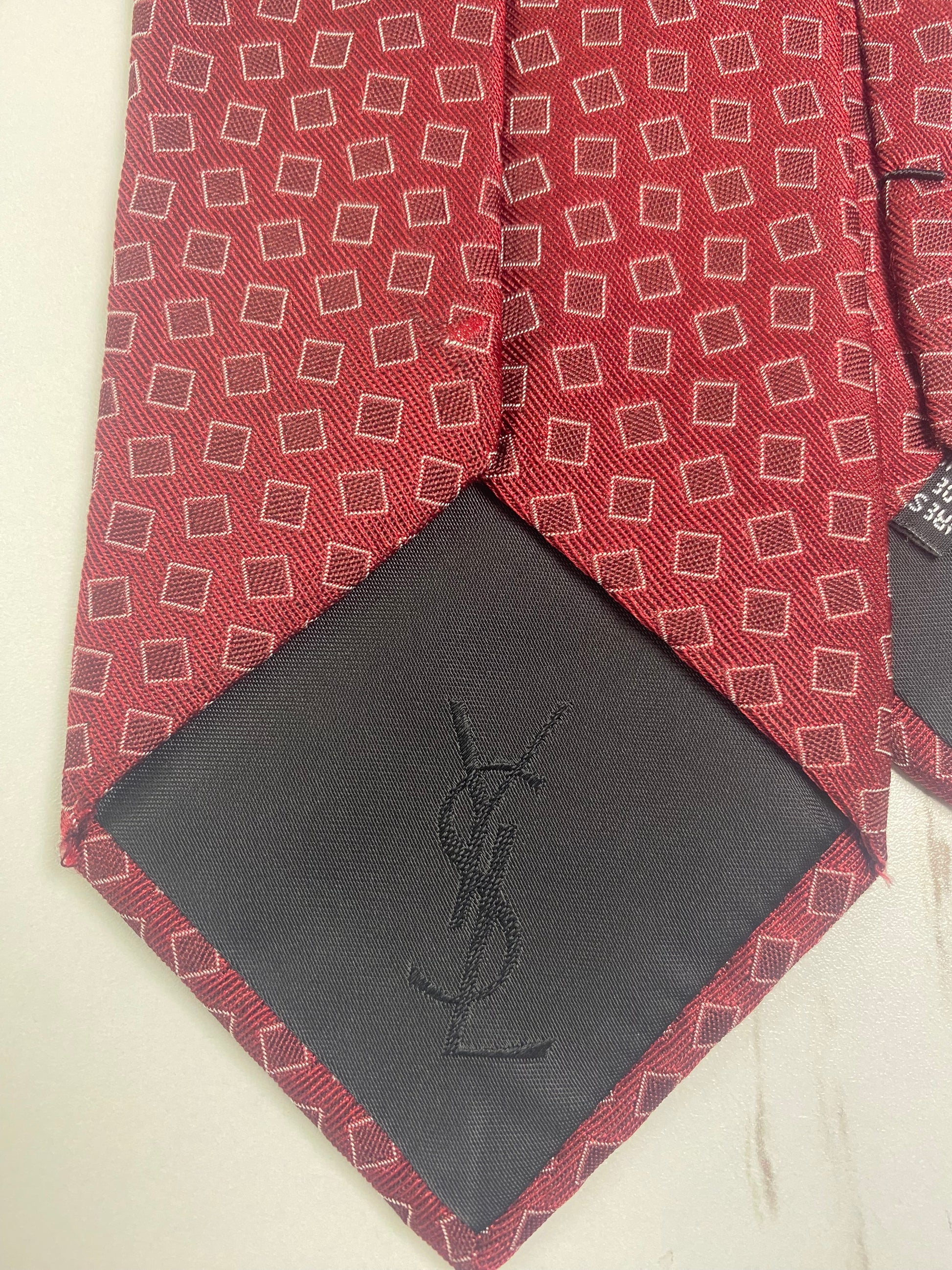 Cravatta YSL Saint Laurent Vintage in seta con motivo a quadri rossi.