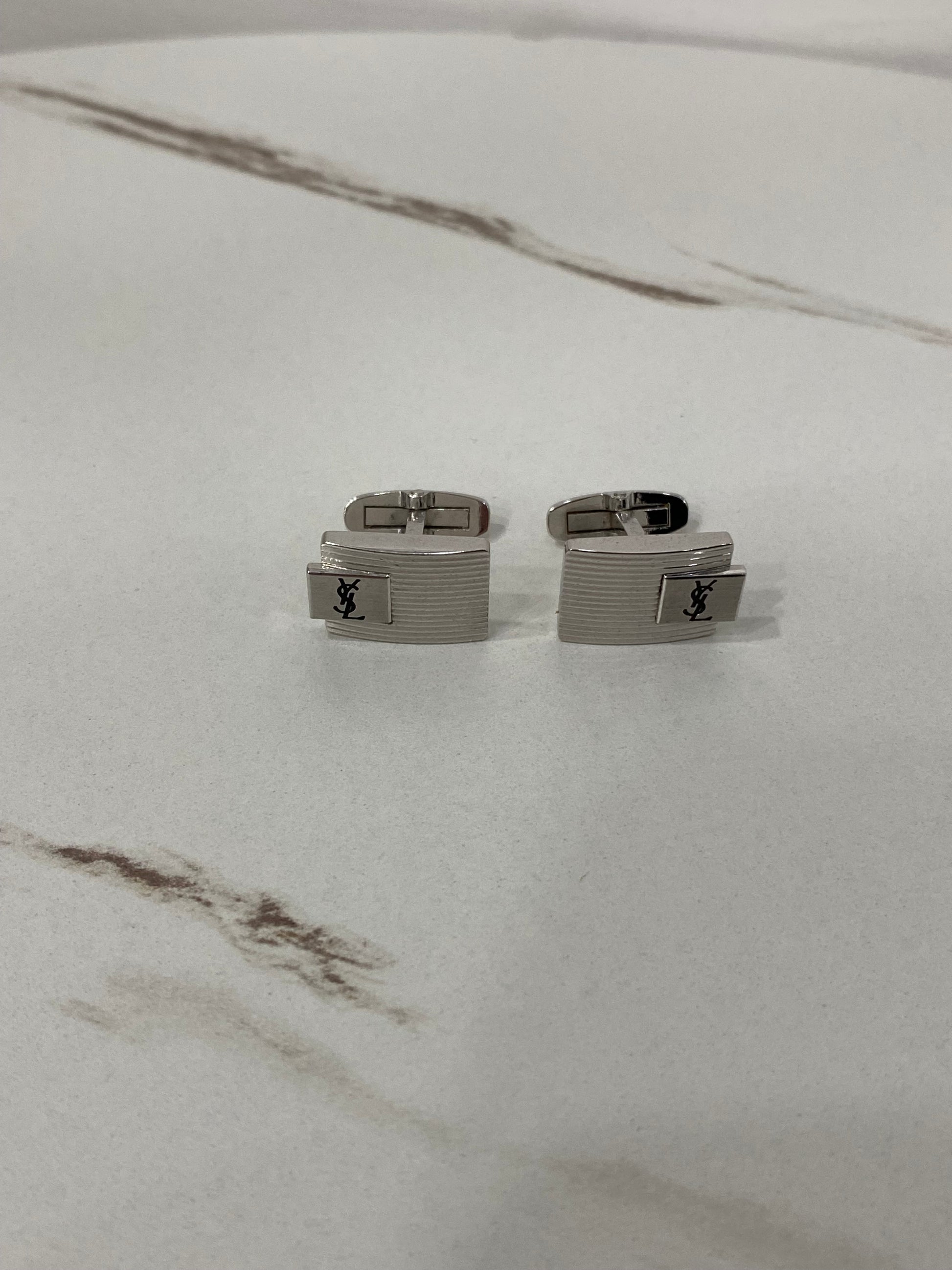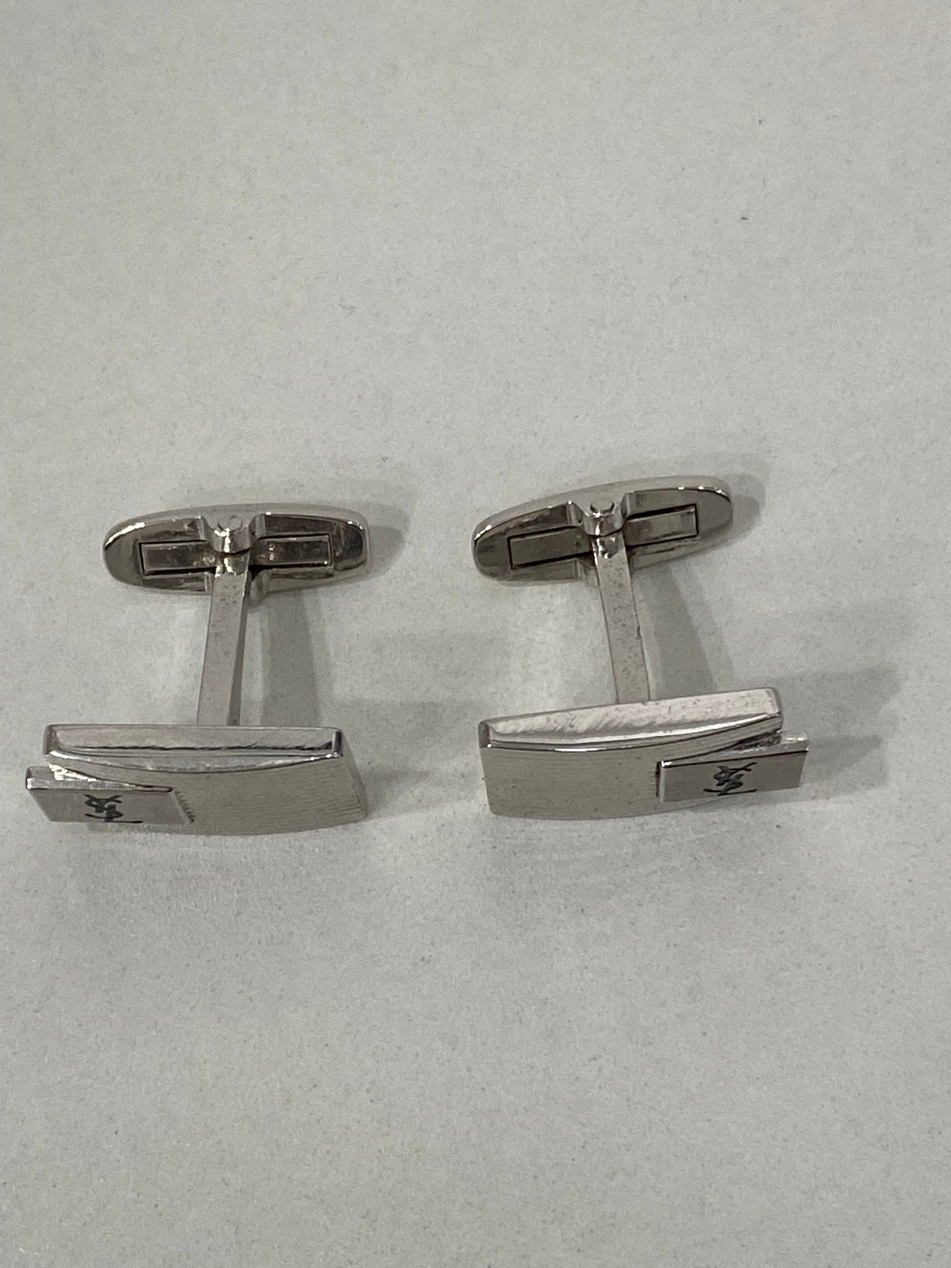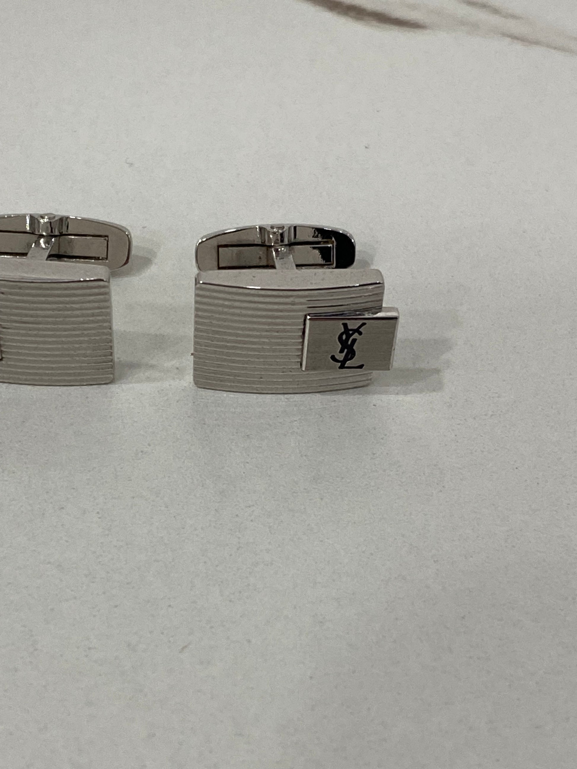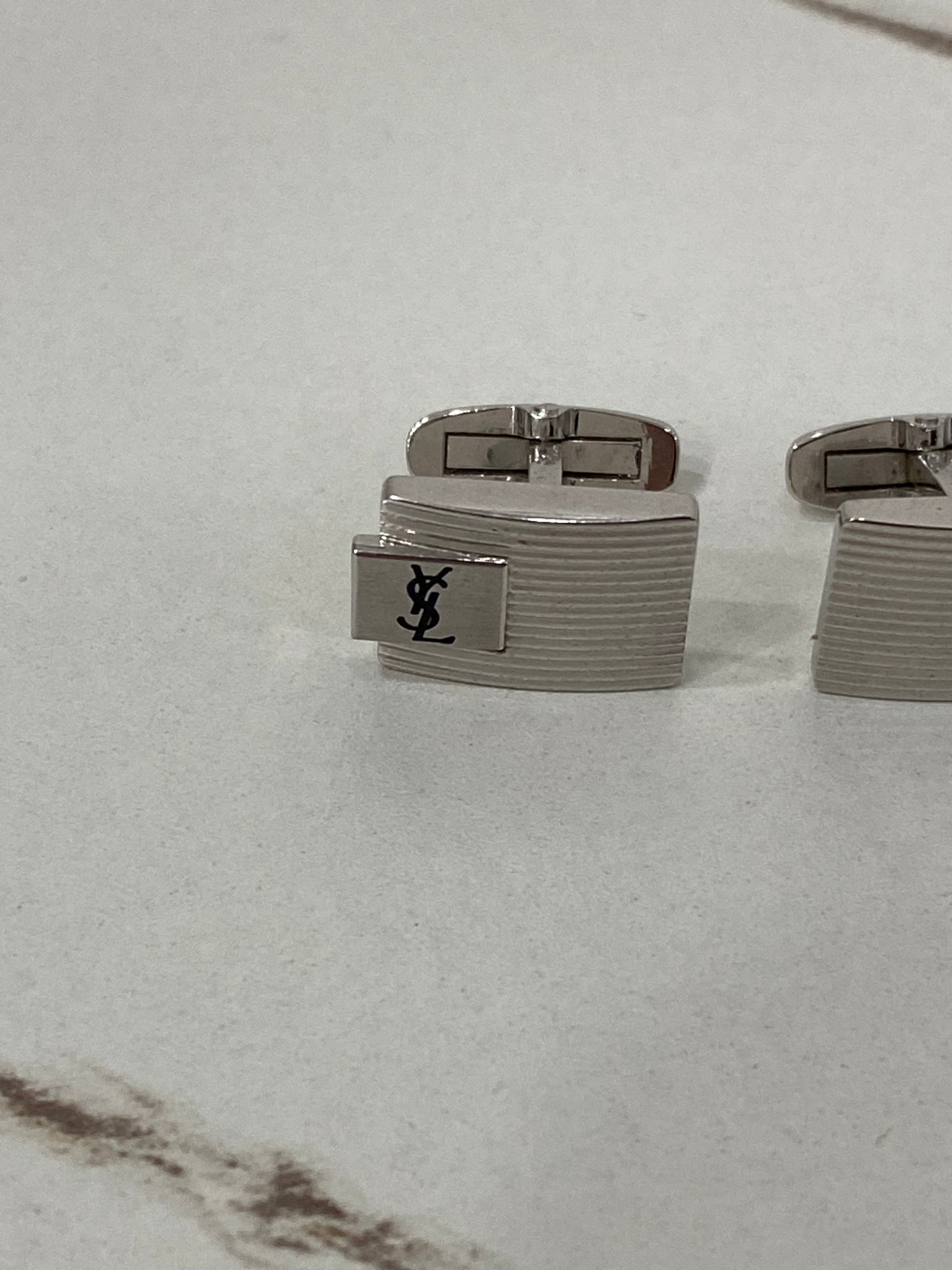 Gemelli modello vintage firmato Yves Saint Laurent (YSL). Realizzati in metallo con finitura argentata.