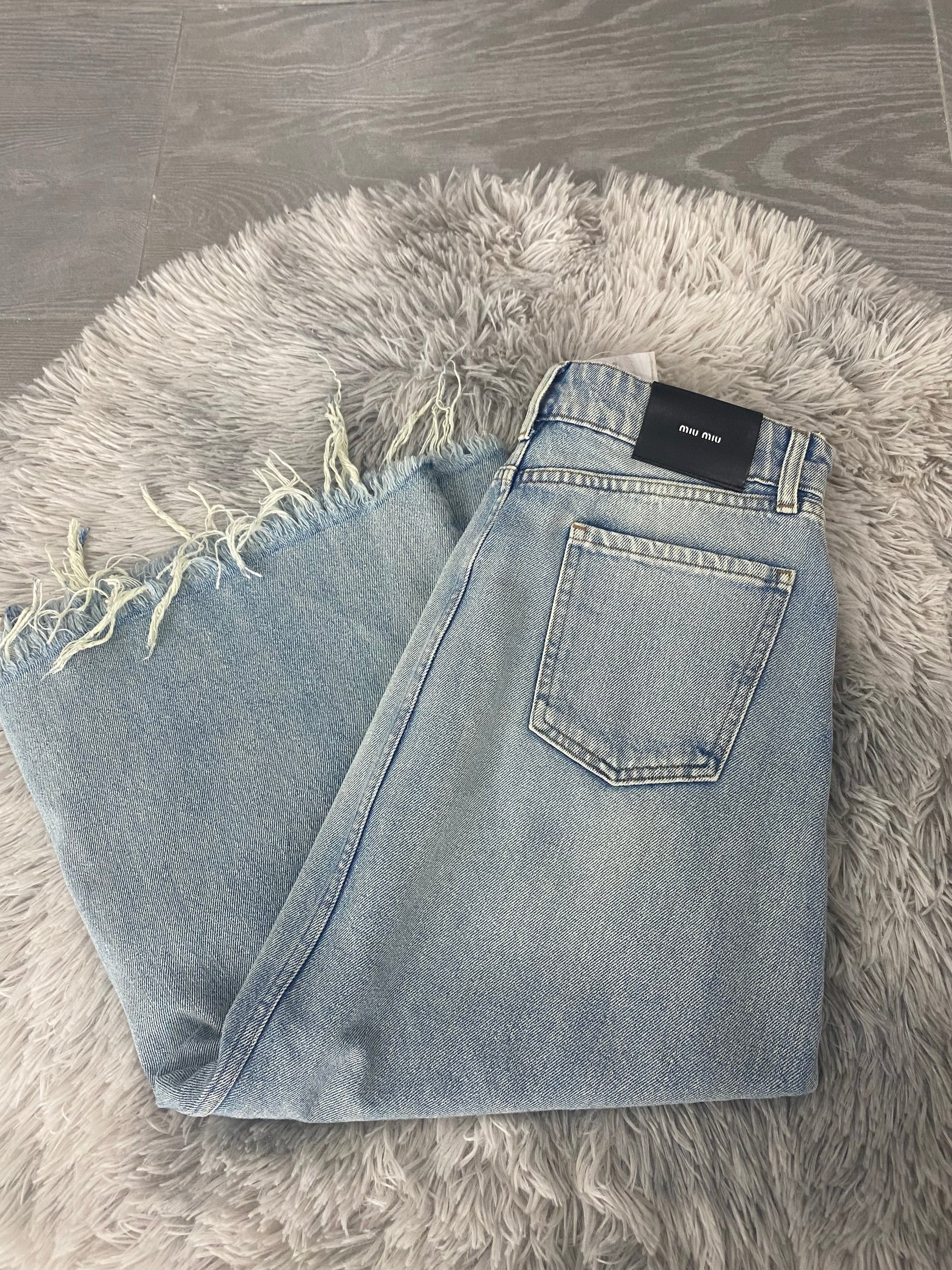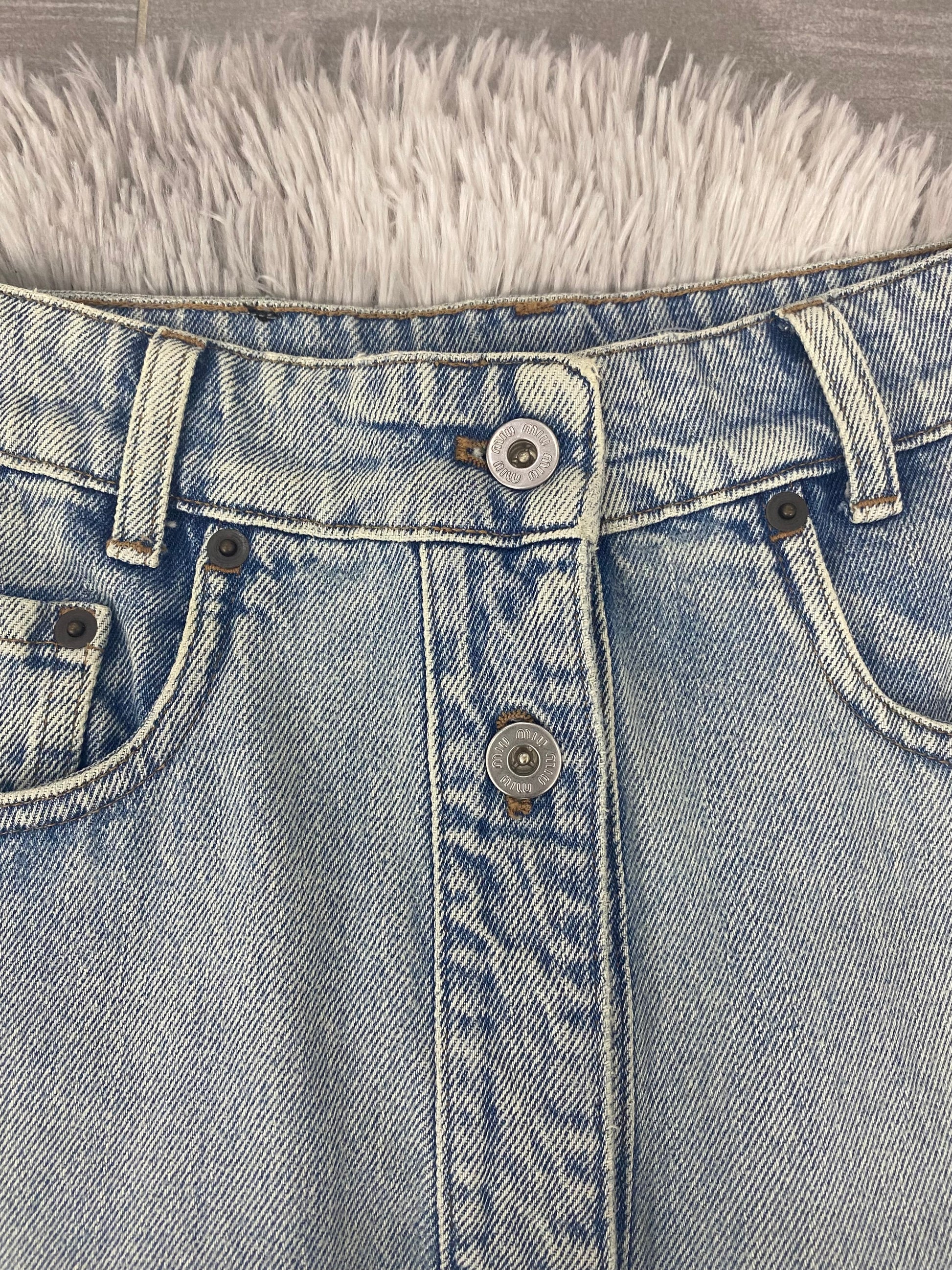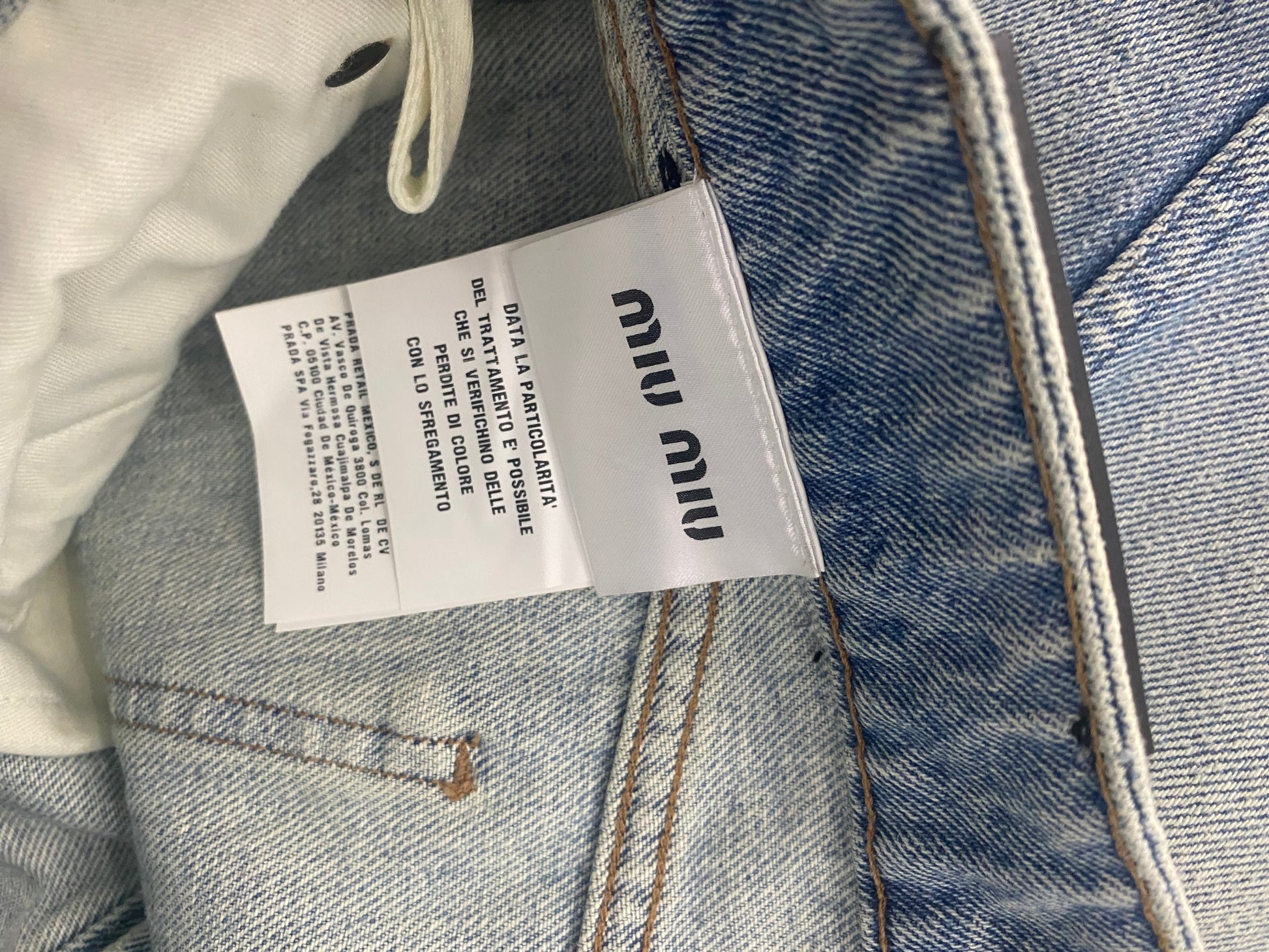 Gonna in denim Miu Miu, con chiusura a bottoni frontali. Gonna Lunga con orlo inferiore sfilacciato.