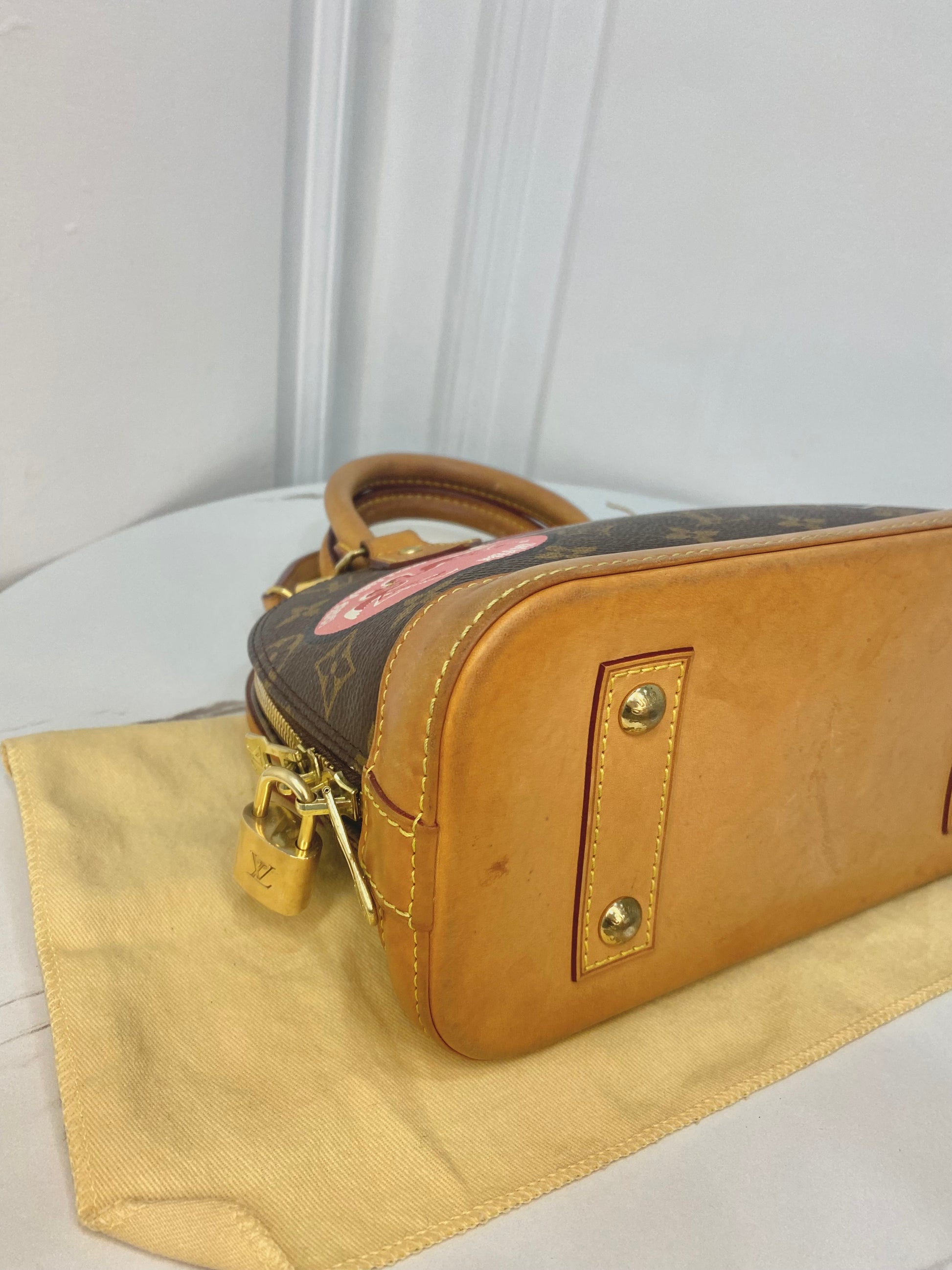 Borsa Louis Vuitton Alma BB, LIMITED EDITION, in tela monogram marrone e con simboli iconici LV.