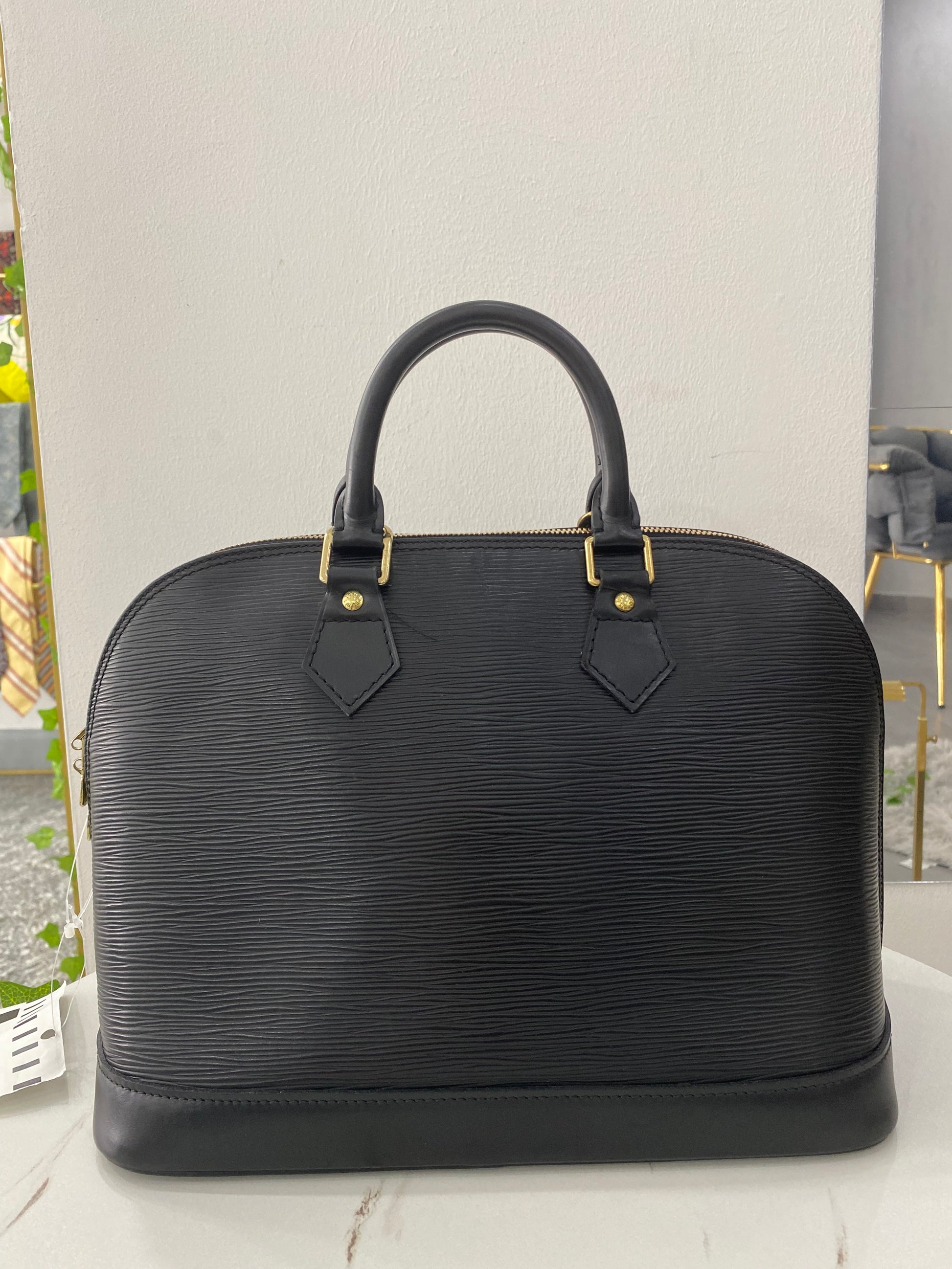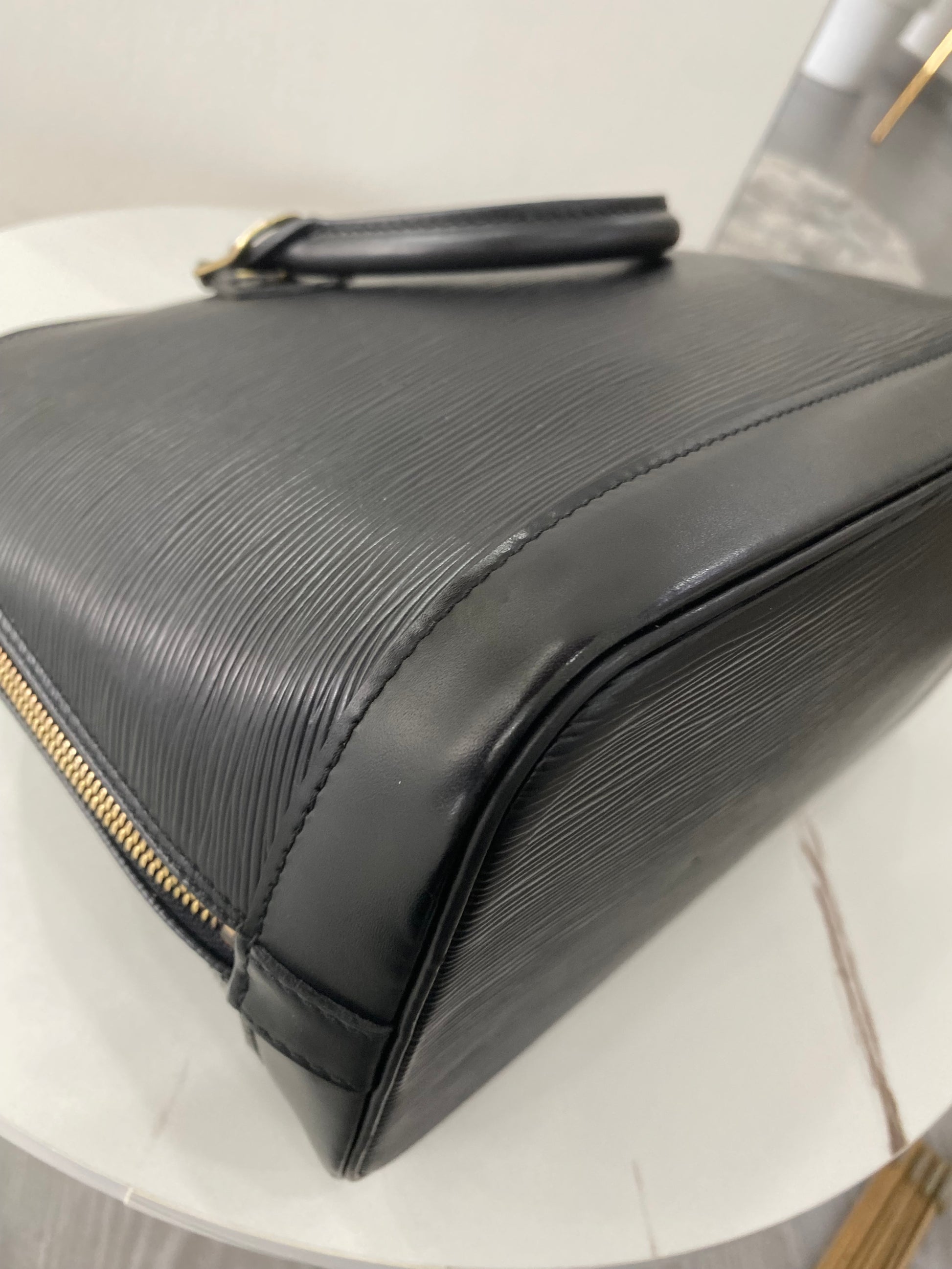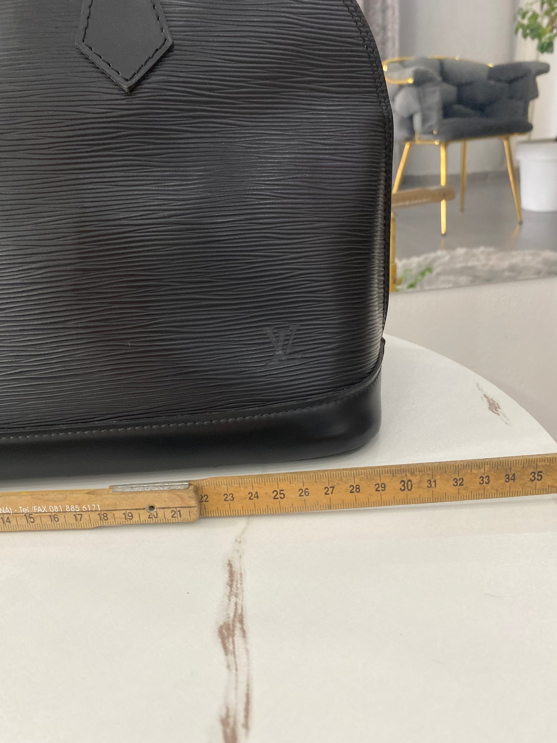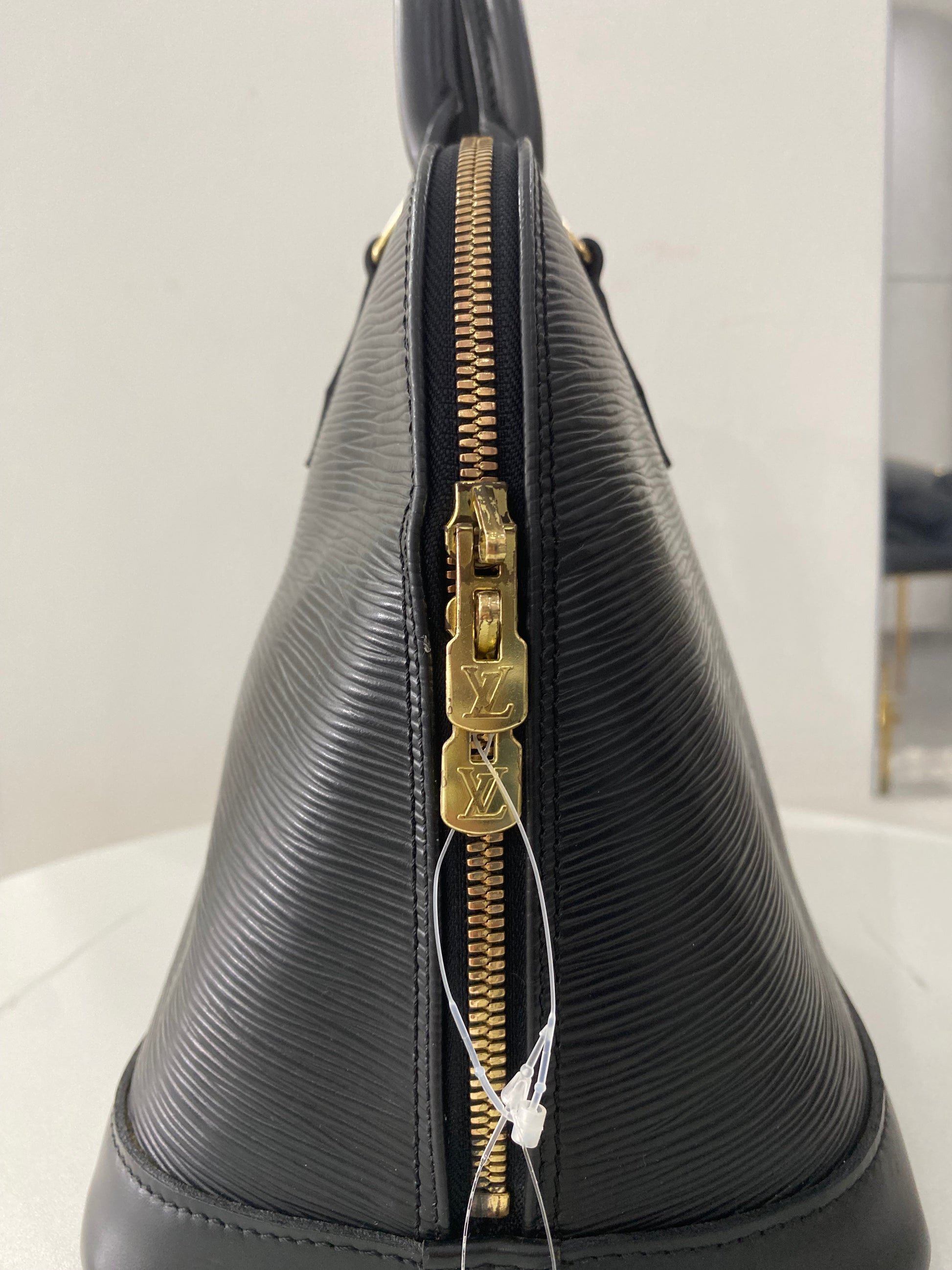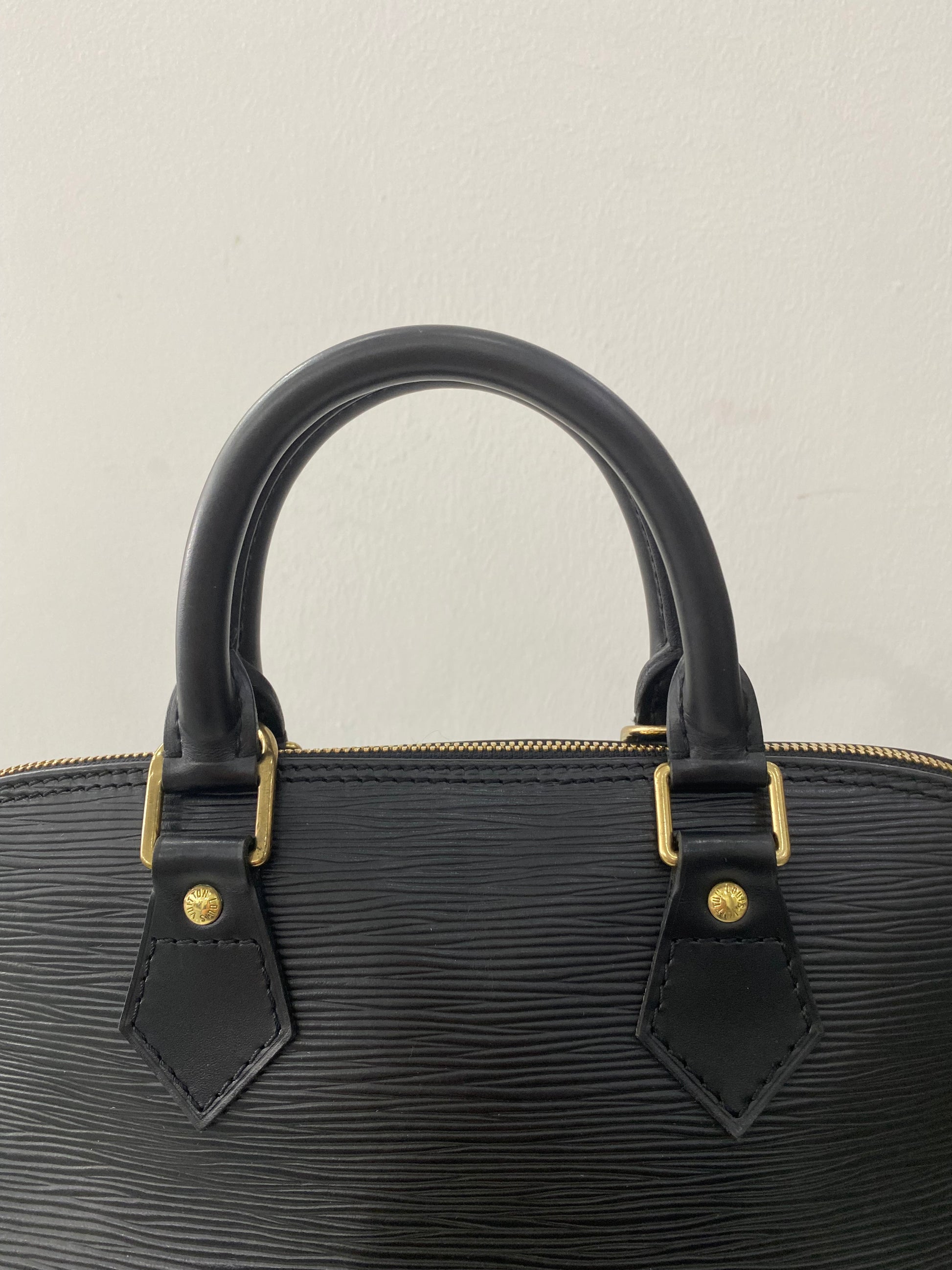 Borsa Louis Vuitton Alma PM in pelle nera Epi e hardware oro.
