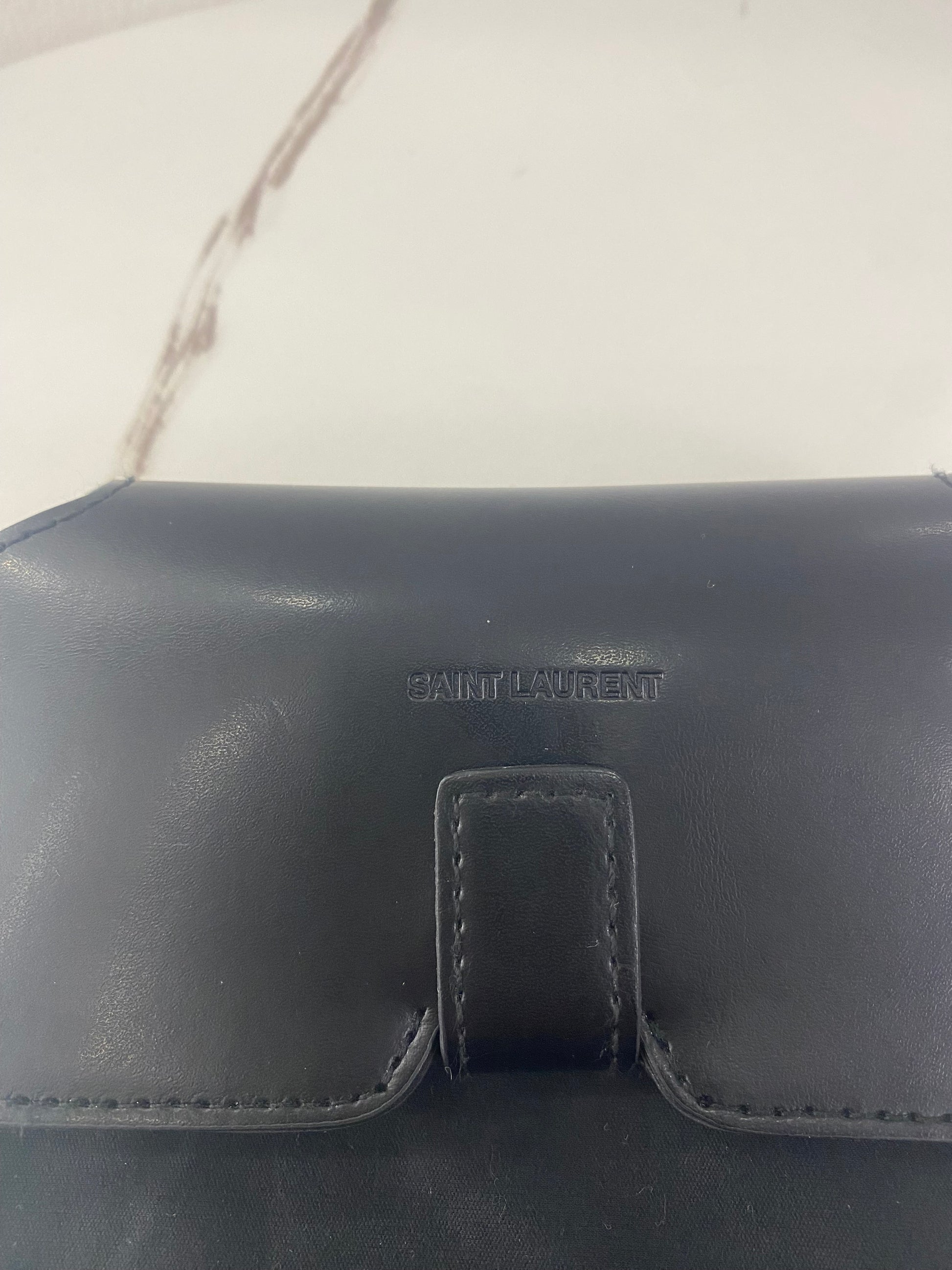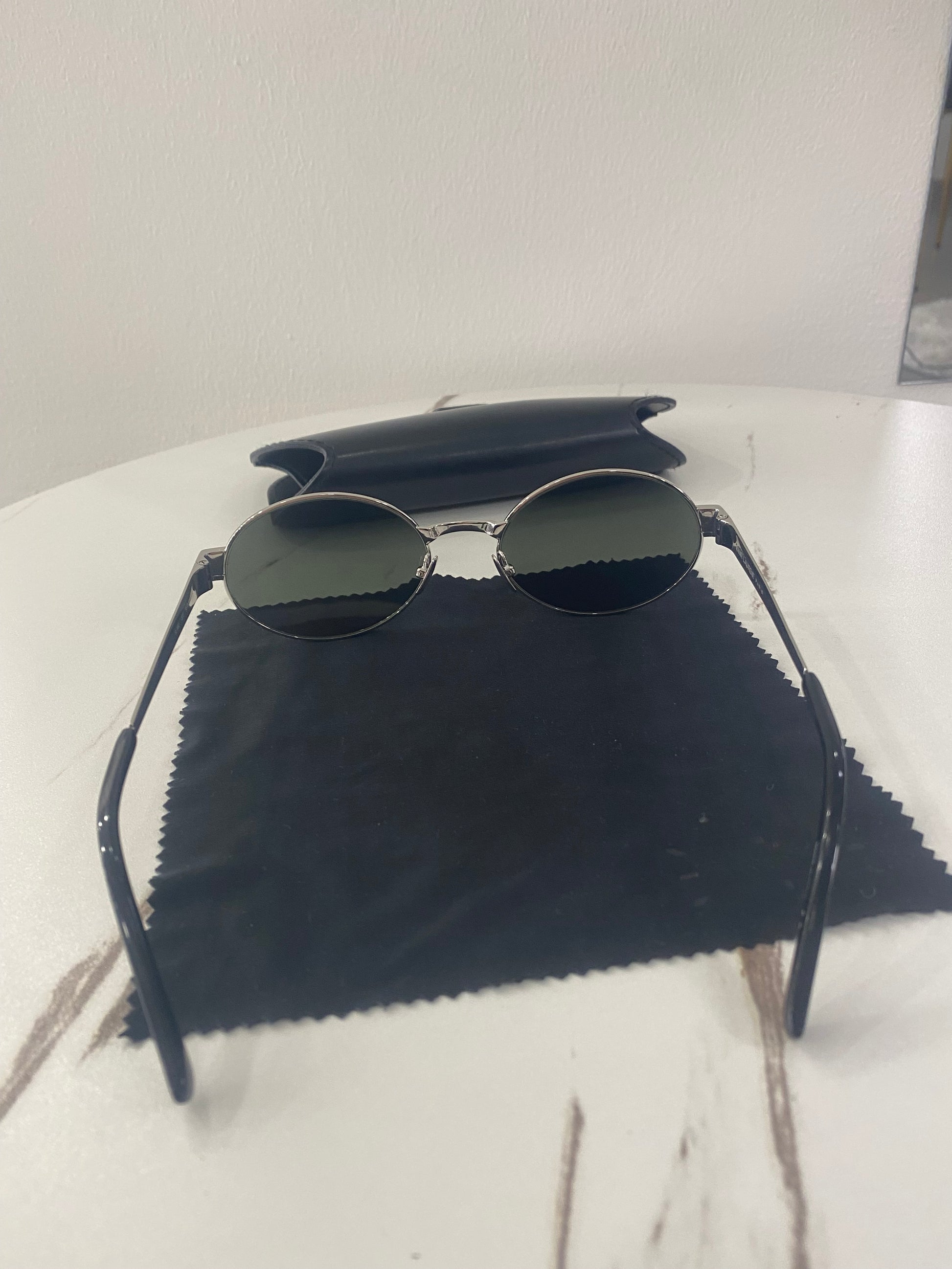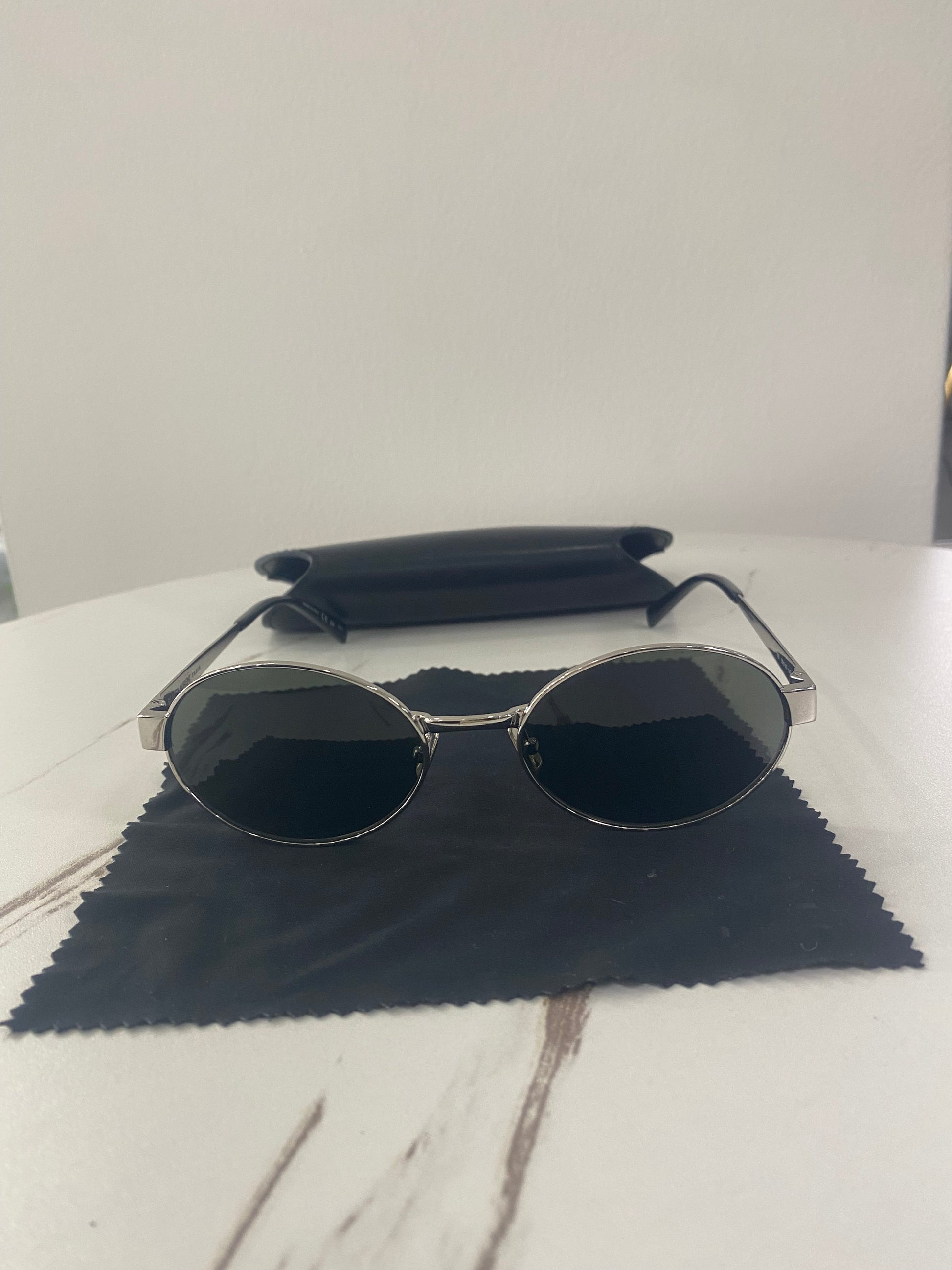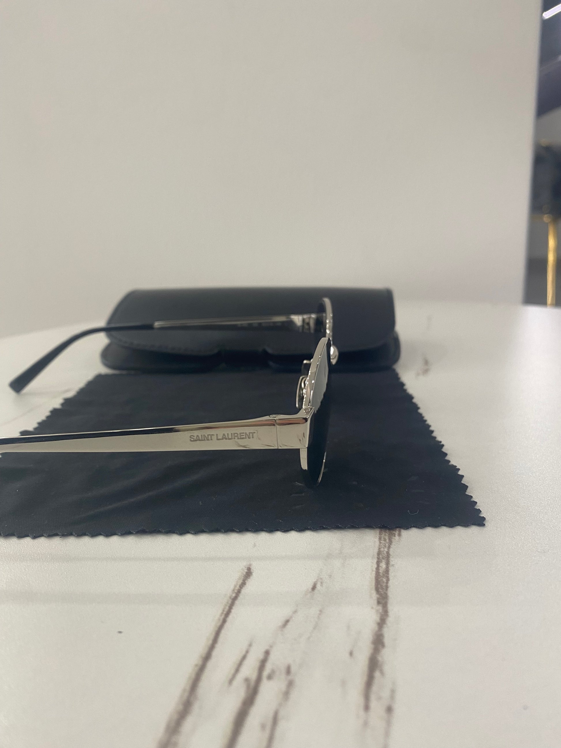 Occhiali da sole Saint Laurent con vetri neri e dettagli argento.