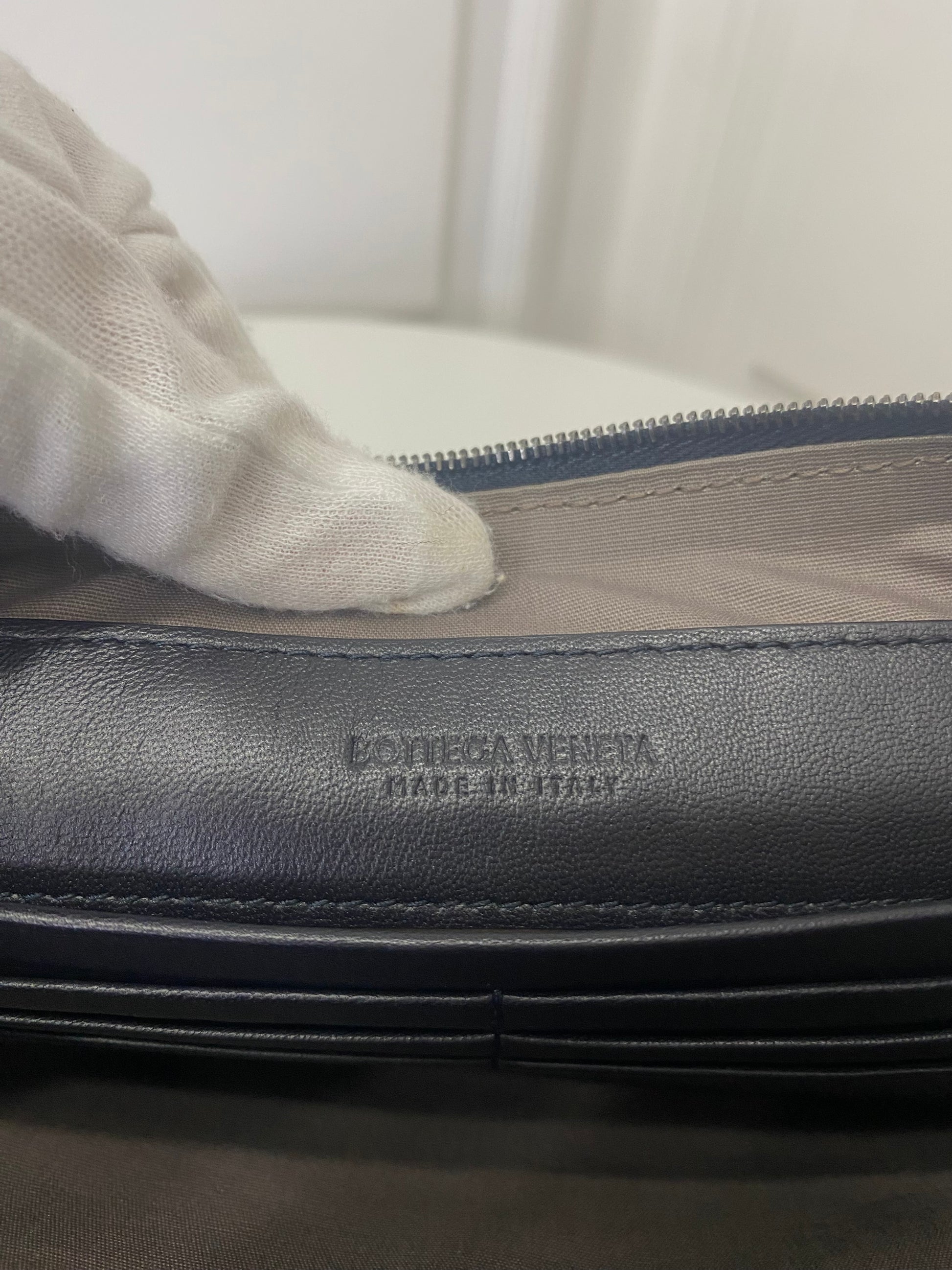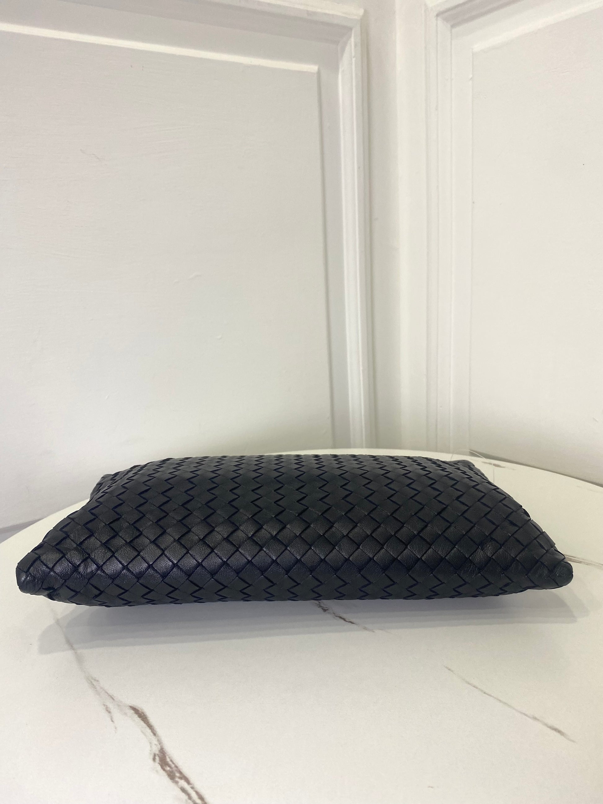 Pochette Bottega Veneta in pelle nera intrecciata. Con hardware argento .