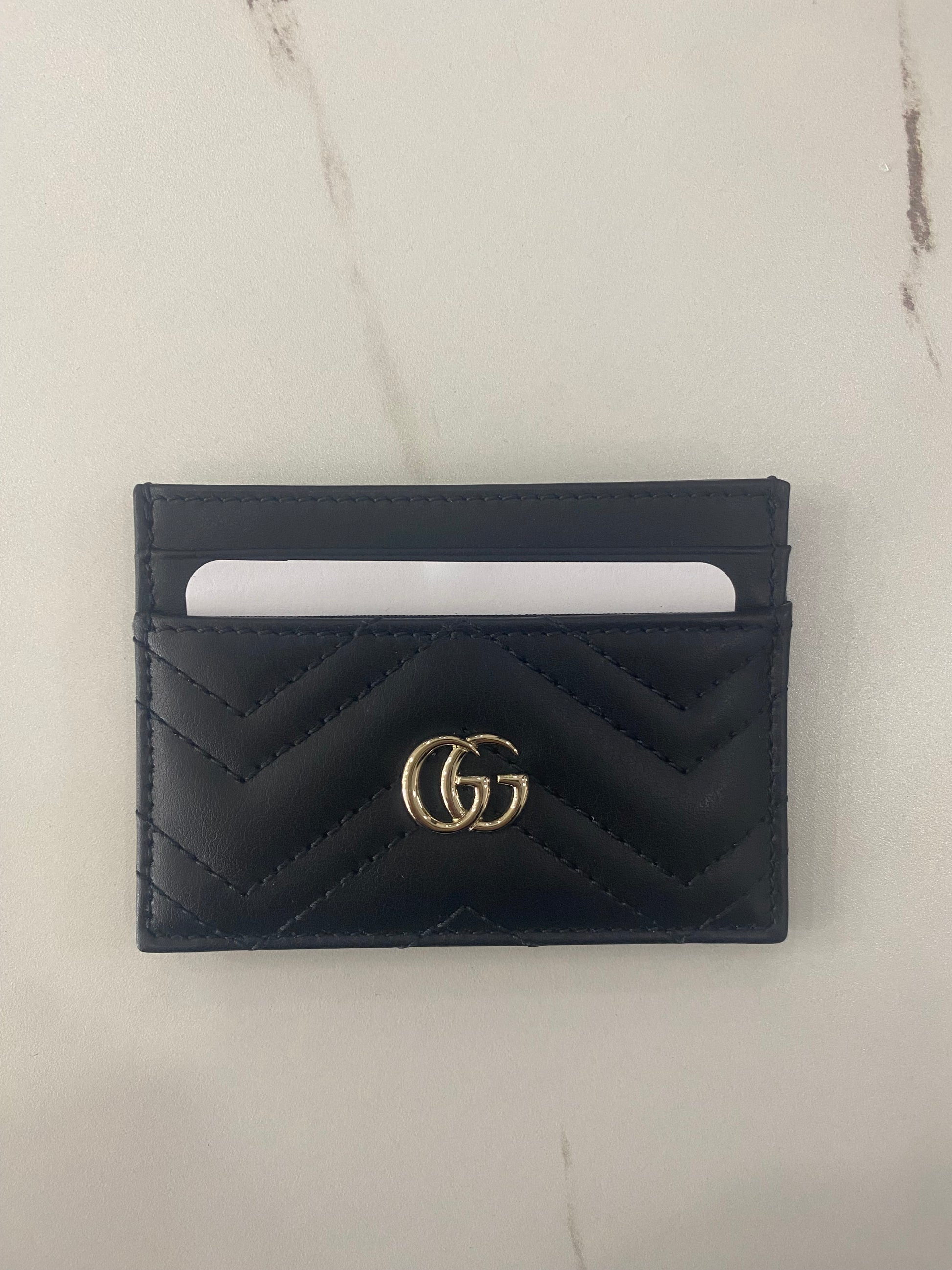 Portacarte Gucci Marmont in pelle nera con hardware frontale GG.