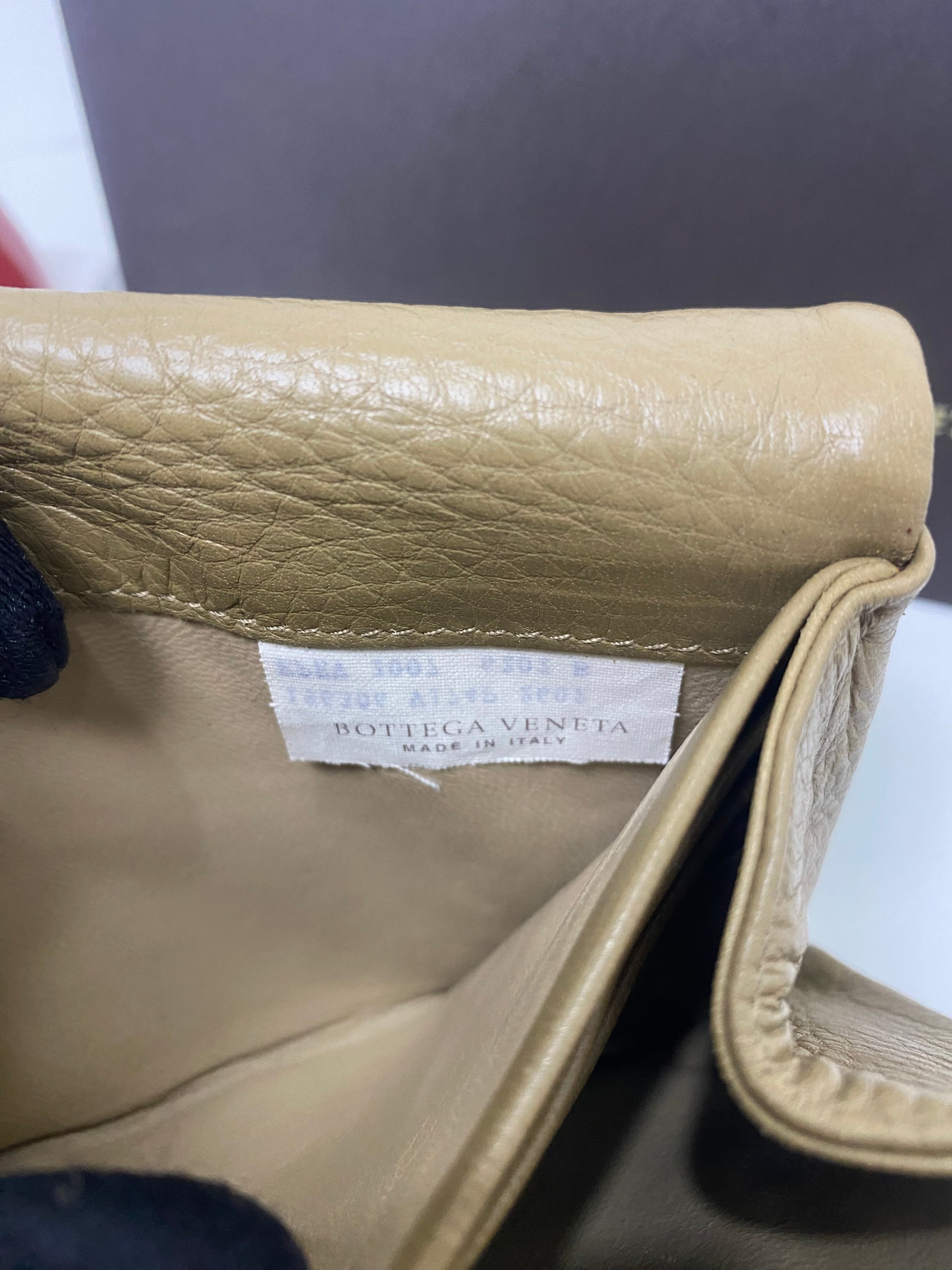 Portafoglio Bottega Veneta in pelle morbida liscia colore beige. Con hardware oro.