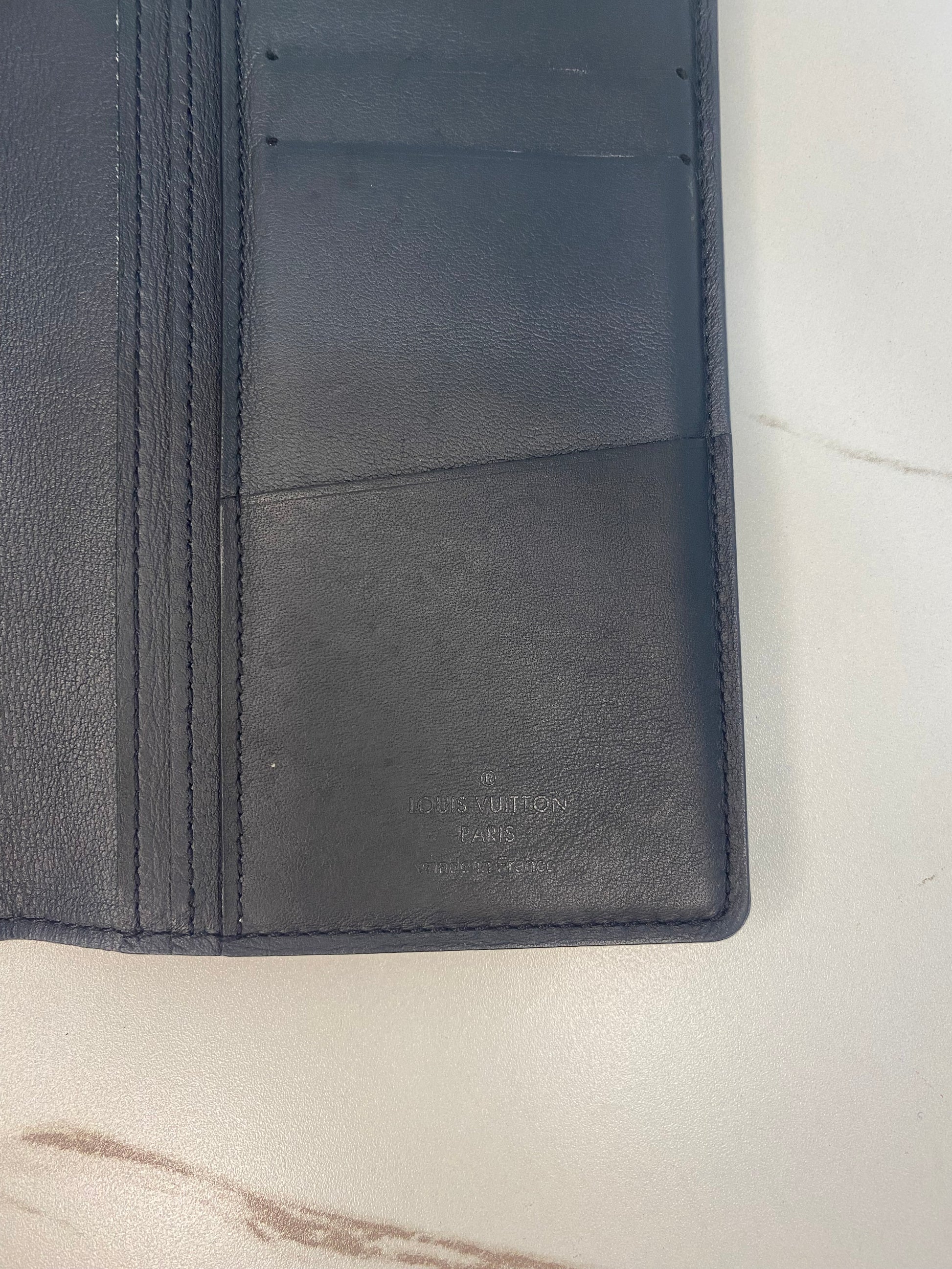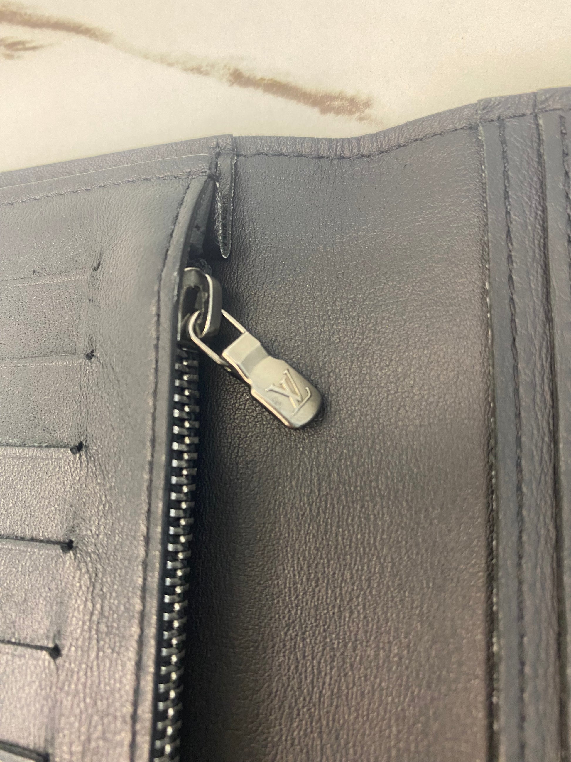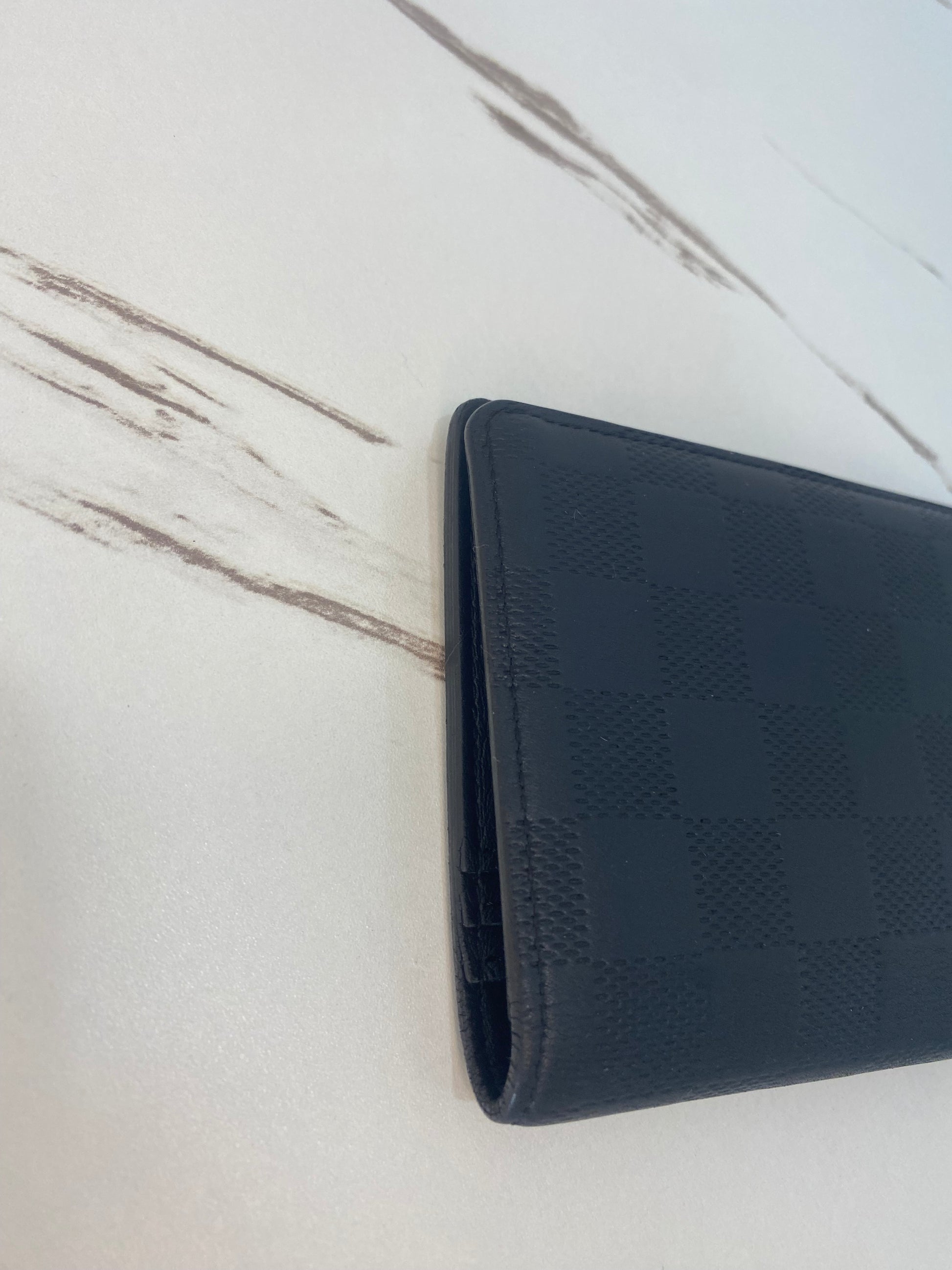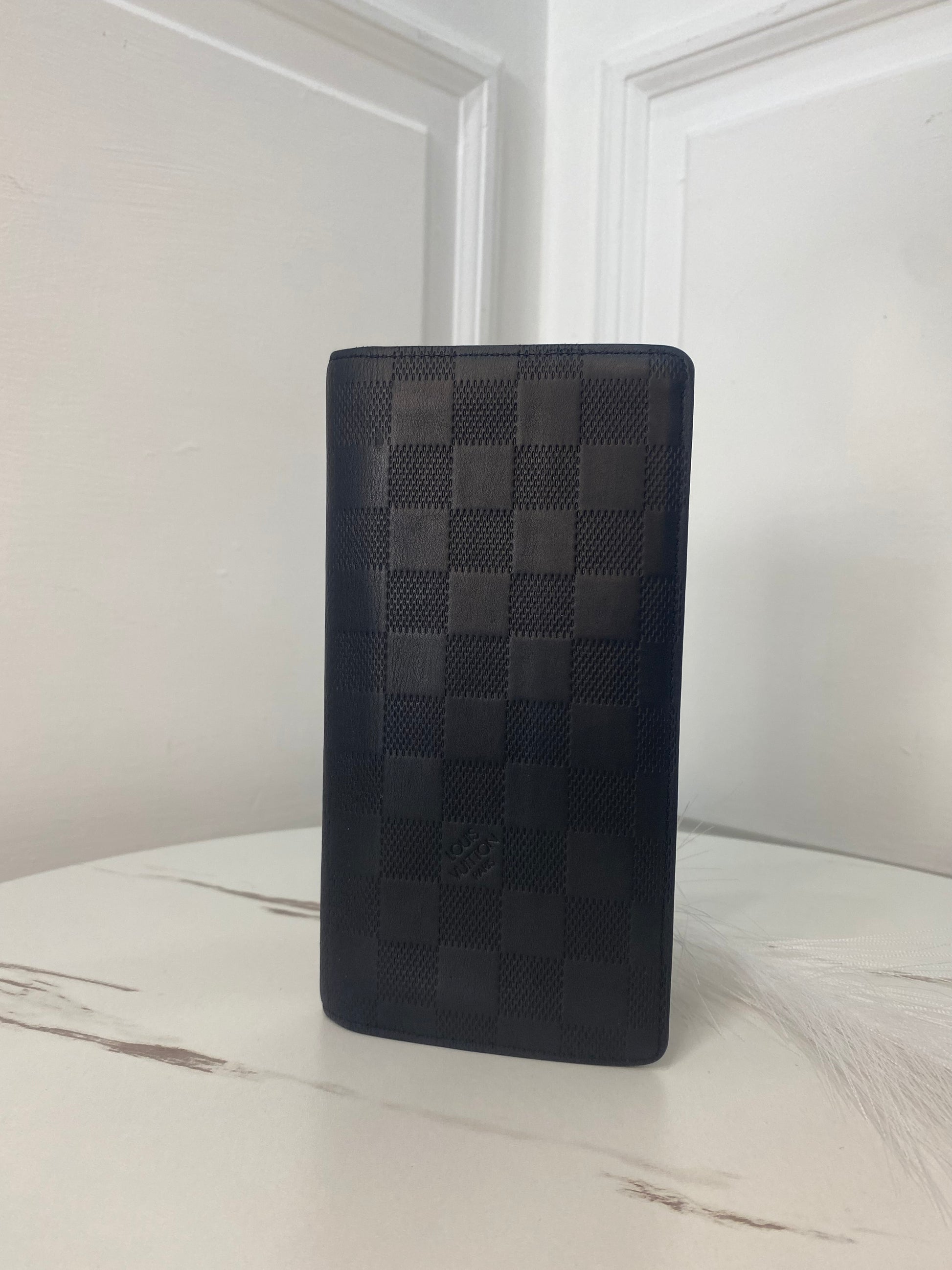 Portafoglio Brazza in pelle Damier Infini nera. Con hardware argento.